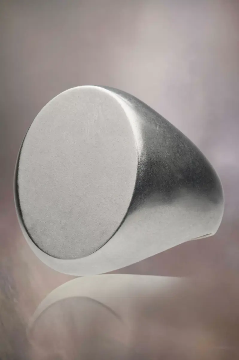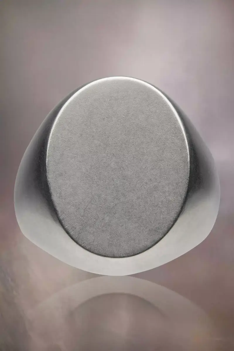 L’anello chevalier ovale è realizzato in palladio con gambo interno placcato oro e logo sul retro.