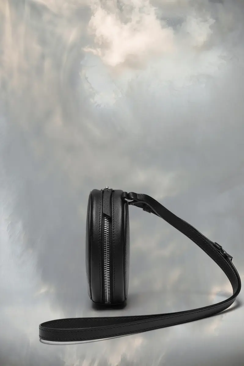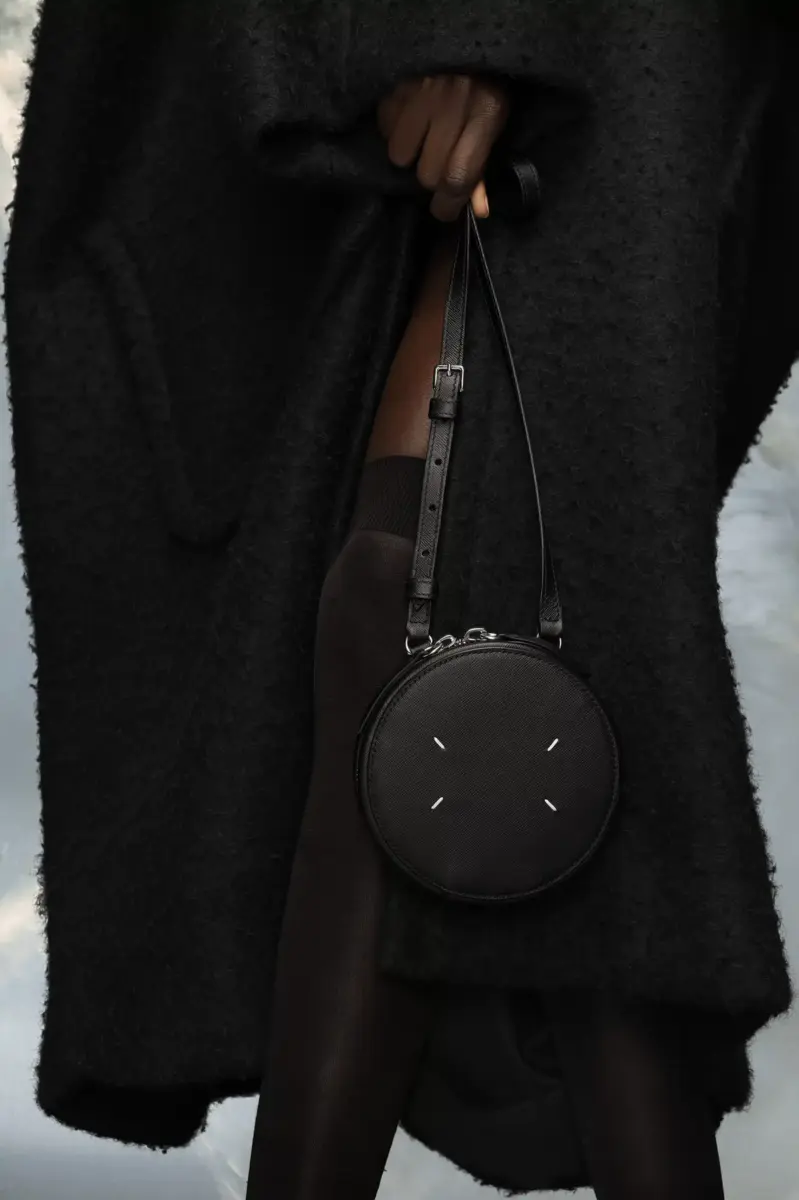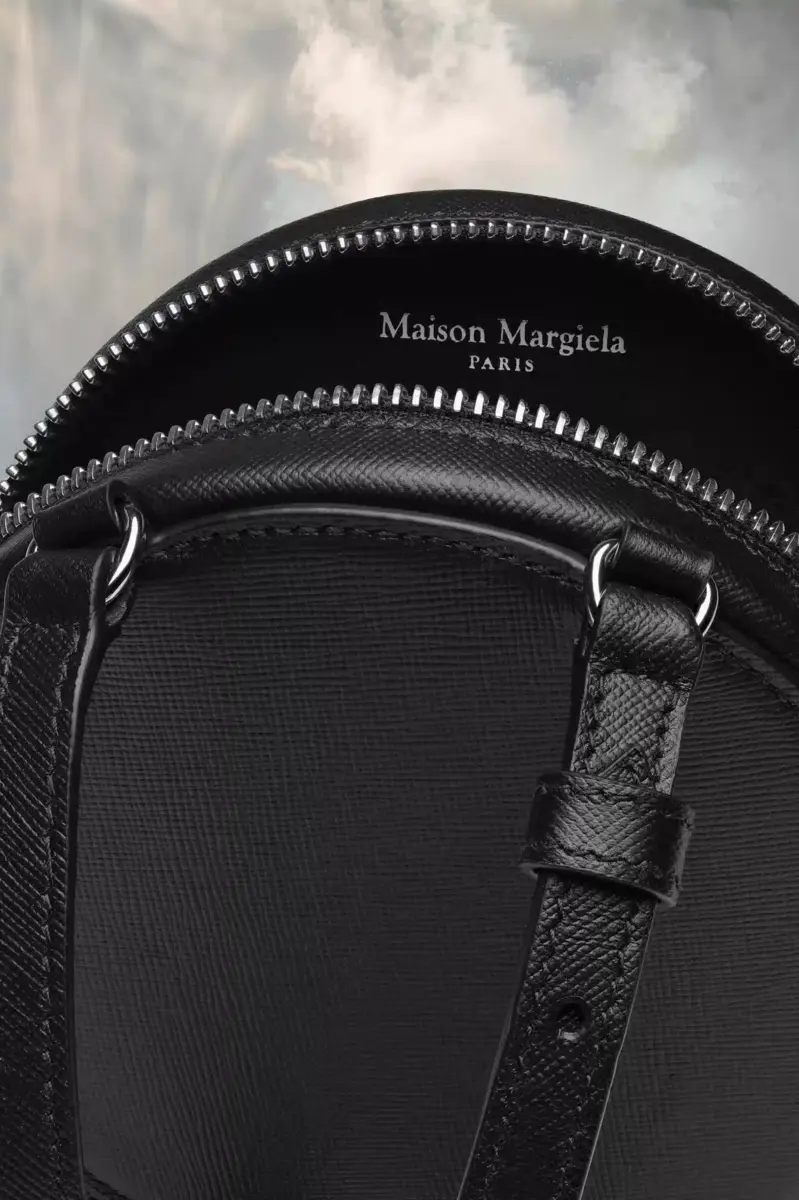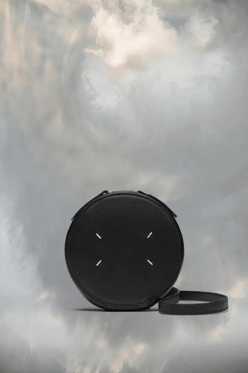Dotata di tracolla regolabile, la mini borsa circolare è realizzata in pelle di vitello con dettagli metallici e uno specchio interno. Le quattro cuciture distintive di Maison Margiela compaiono sul davanti; l’opposto di un’etichetta.