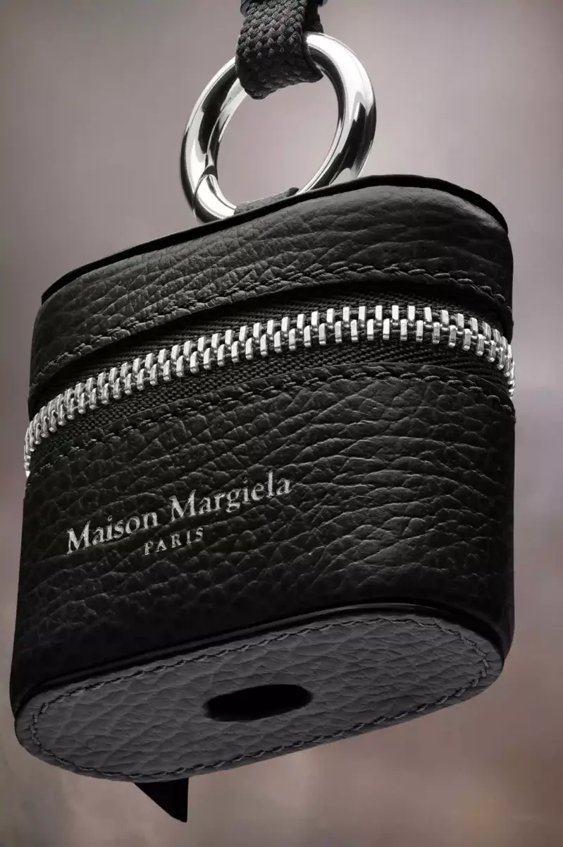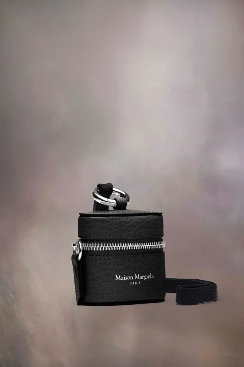 Realizzata in pelle goffrata, la custodia per AirPods presenta il logo e una chiusura a zip. È dotata di laccio e anello per una maggiore facilità d’uso.