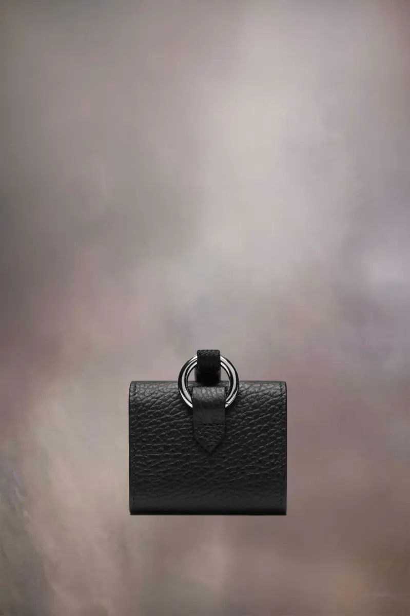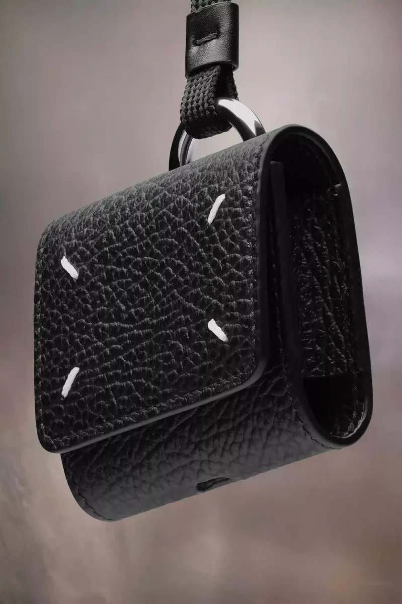Realizzata in pelle goffrata, la custodia per AirPods presenta una chiusura a scatto con logo interno. È dotata di laccio e anello per una facile indossabilità. La firma di Maison Margiela, le Quattro cuciture, è presente sulla patta; l’opposto di un’etichetta.