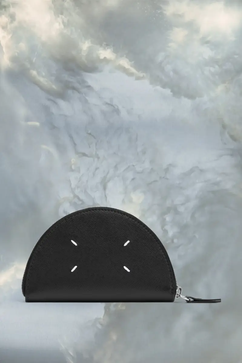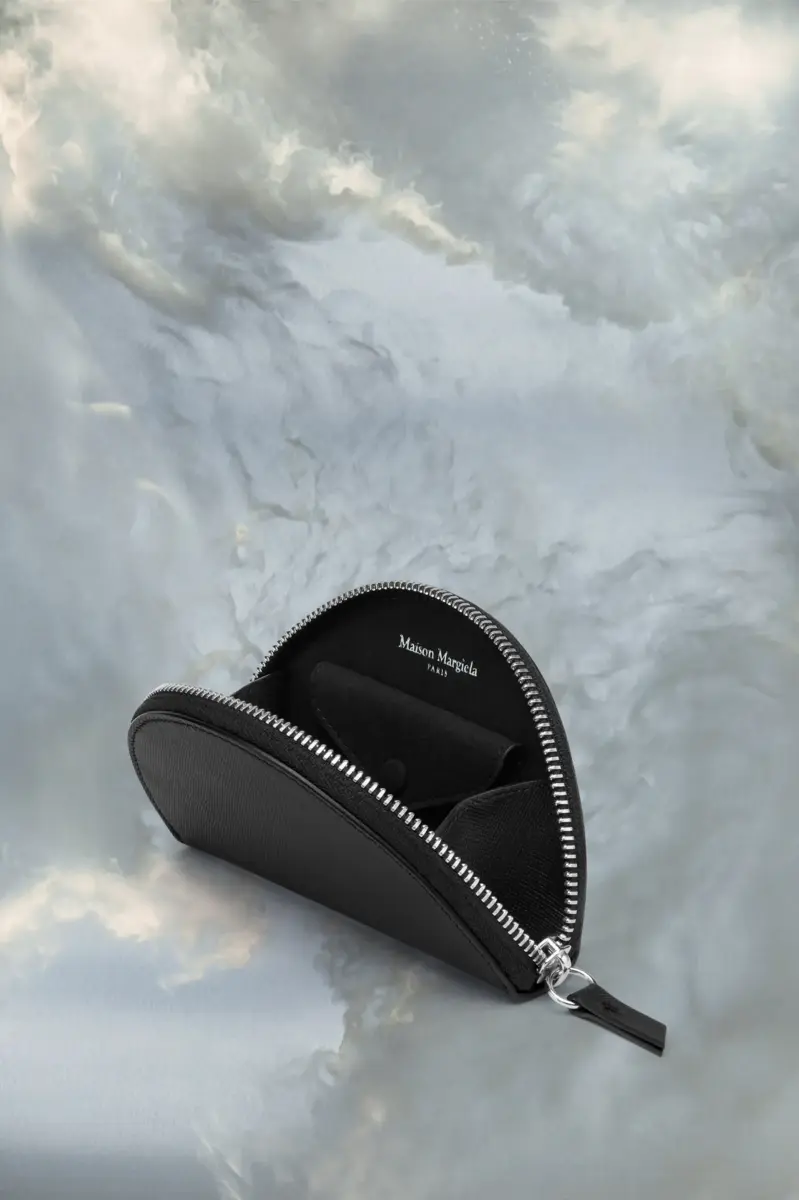 L’accessorio è realizzato in pelle saffiano con chiusura a zip. Le quattro cuciture distintive di Maison Margiela sono presenti sul davanti, l’opposto di un’etichetta.