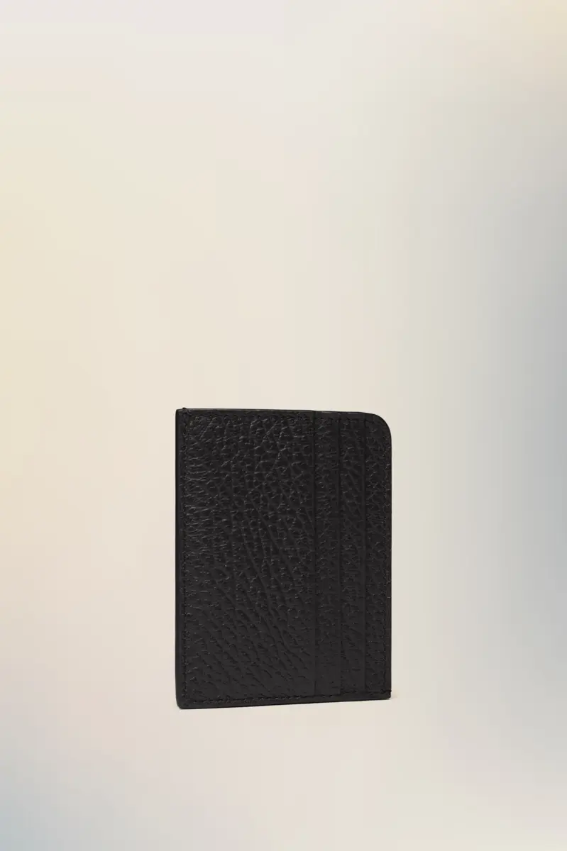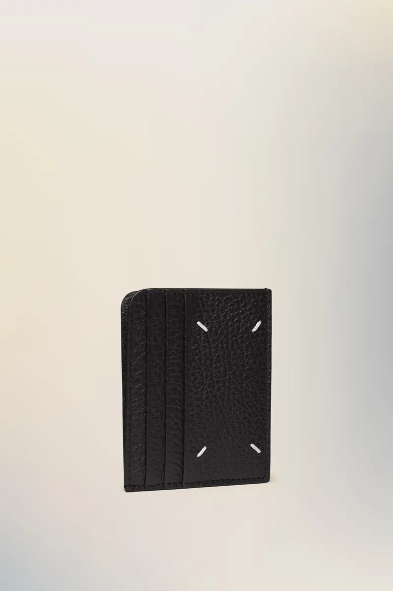 Con sei scomparti per carte di credito, il portacarte è realizzato in pelle goffrata a grana. La firma di Maison Margiela, le quattro cuciture, è presente sul retro, l’opposto di un’etichetta.