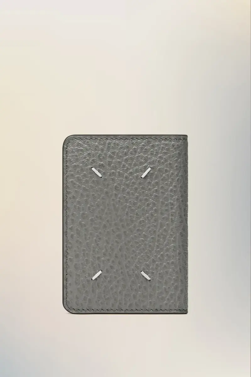 Con più slot per carte e il logo all’interno, il porta carte è realizzato in pelle goffrata. La firma di Maison Margiela, le quattro cuciture, è presente sul retro, l’opposto di un’etichetta.