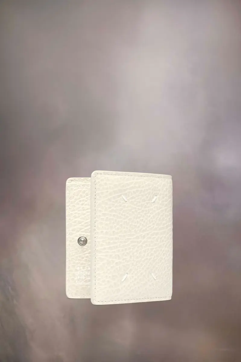 Realizzato in pelle goffrata a grana, il portacarte ha una tasca interna a busta e un logo numerico con quattro scomparti per carte. La firma di Maison Margiela, le quattro cuciture, è presente sul retro, l’opposto di un’etichetta.
