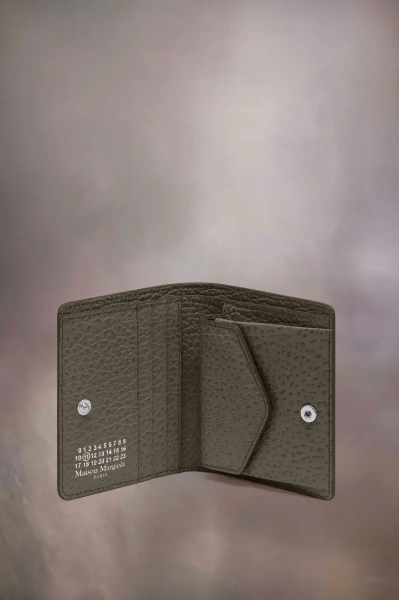 Realizzato in pelle goffrata a grana, il portacarte ha una tasca interna a busta e un logo numerico con quattro scomparti per carte. La firma di Maison Margiela, le quattro cuciture, è presente sul retro, l’opposto di un’etichetta.