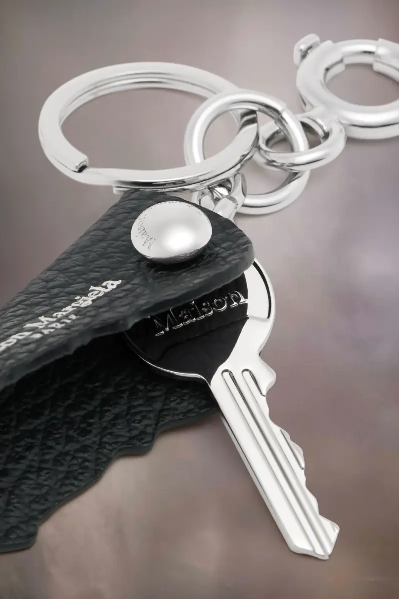 Realizzato in pelle goffrata a grana, il portachiavi presenta una chiusura a scatto di sicurezza e il logo Maison Margiela sul davanti. Anche la borchia è decorata con il logo.