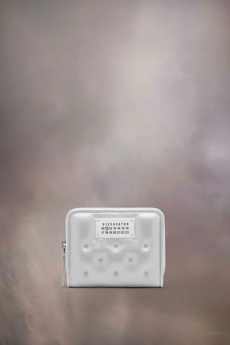 Il portafoglio piccolo Glam Slam è realizzato in nappa con ricami speciali, con chiusura a zip e portamonete interno con zip. Il modello Glam Slam ha debuttato nella sfilata PE18 e presenta un design trapuntato che richiama la lavorazione matelassé, la tecnica delle trapunte cucite a mano create a Marsiglia, in Francia. Il concept riflette la nozione di glamour inconscio della Maison ed evoca la sua associazione con il comfort, seguendo lo studio dei rituali di abbigliamento e viaggio in tutto il mondo. È decorato con l’etichetta con logo numerico sul davanti.