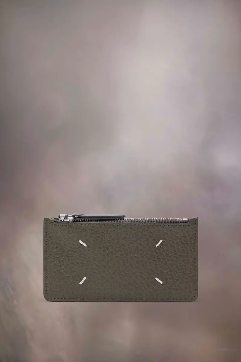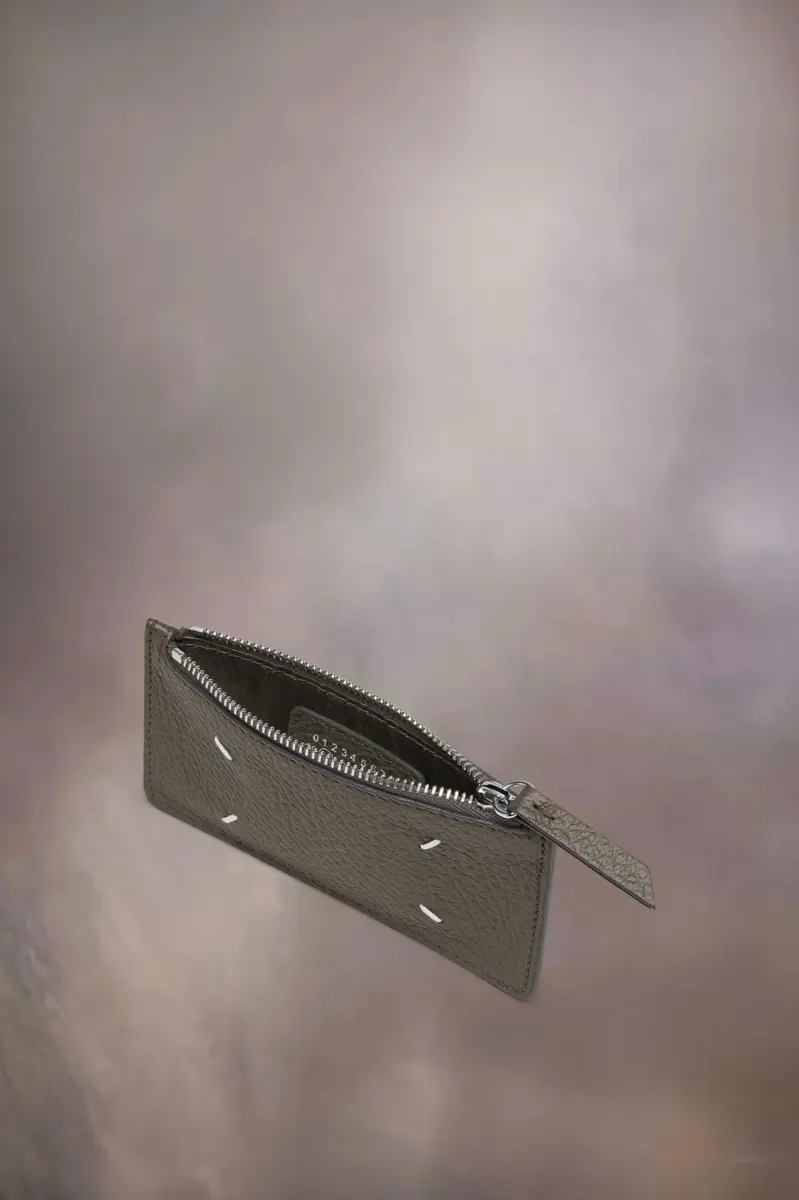 Realizzato in pelle goffrata a grana, il portafoglio porta carte ha una sezione con zip per monete e cinque scomparti per carte. Il logo numerico è presente all’interno. La firma di Maison Margiela, le quattro cuciture, è presente sul retro, l’opposto di un’etichetta.