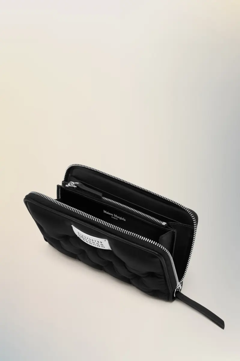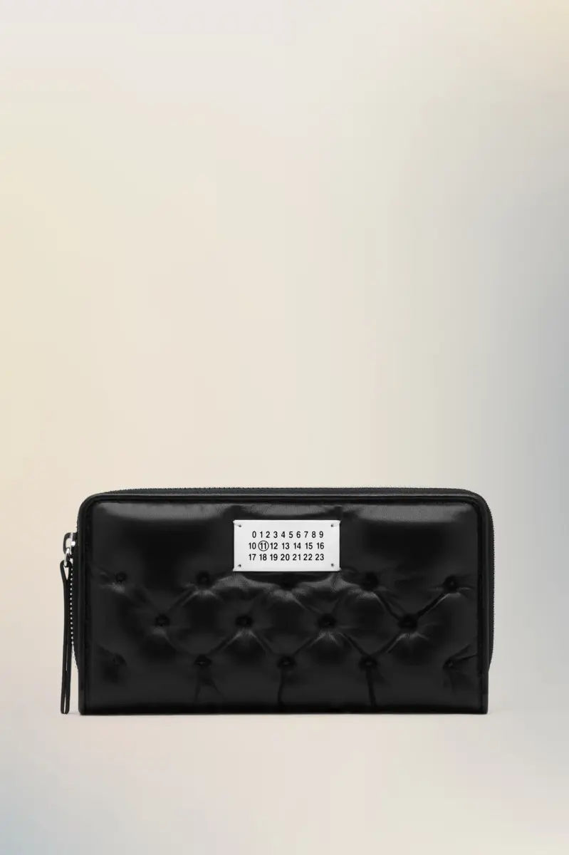 Realizzato in nappa trapuntata ricamata, il portafoglio Glam Slam richiama il concetto di glamour inconscio e ne evoca l’associazione con la comodità, seguendo lo studio dei rituali di vestire e viaggiare in tutto il mondo. Il Glam Slam ha debuttato nella sfilata SS18 e presenta un design trapuntato che imita il matelassé, lo stile delle trapunte cucite a mano create a Marsiglia, in Francia. Il design con cerniera presenta bordi arrotondati e flessibili, una sezione interna con cerniera e l’etichetta con il logo numerico della Maison.