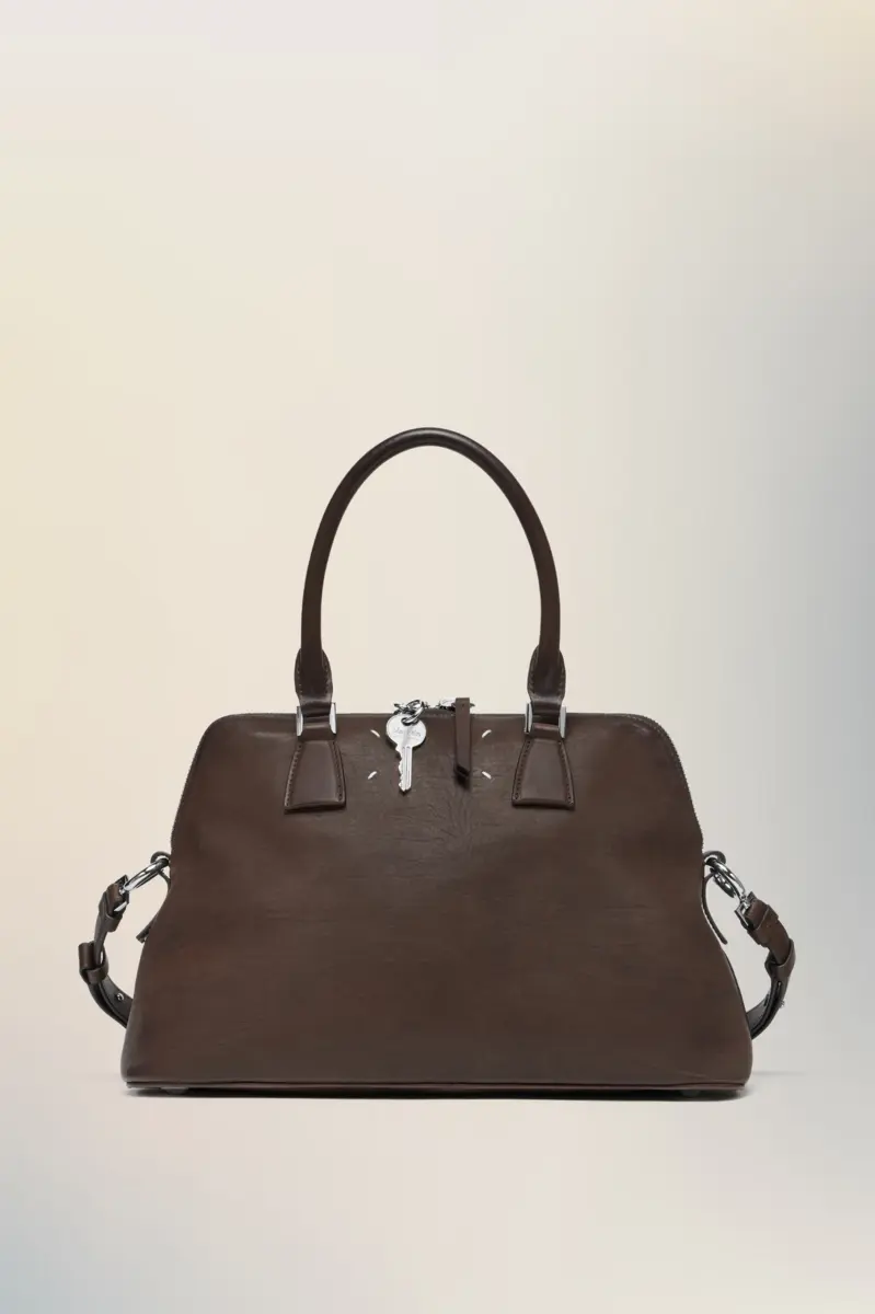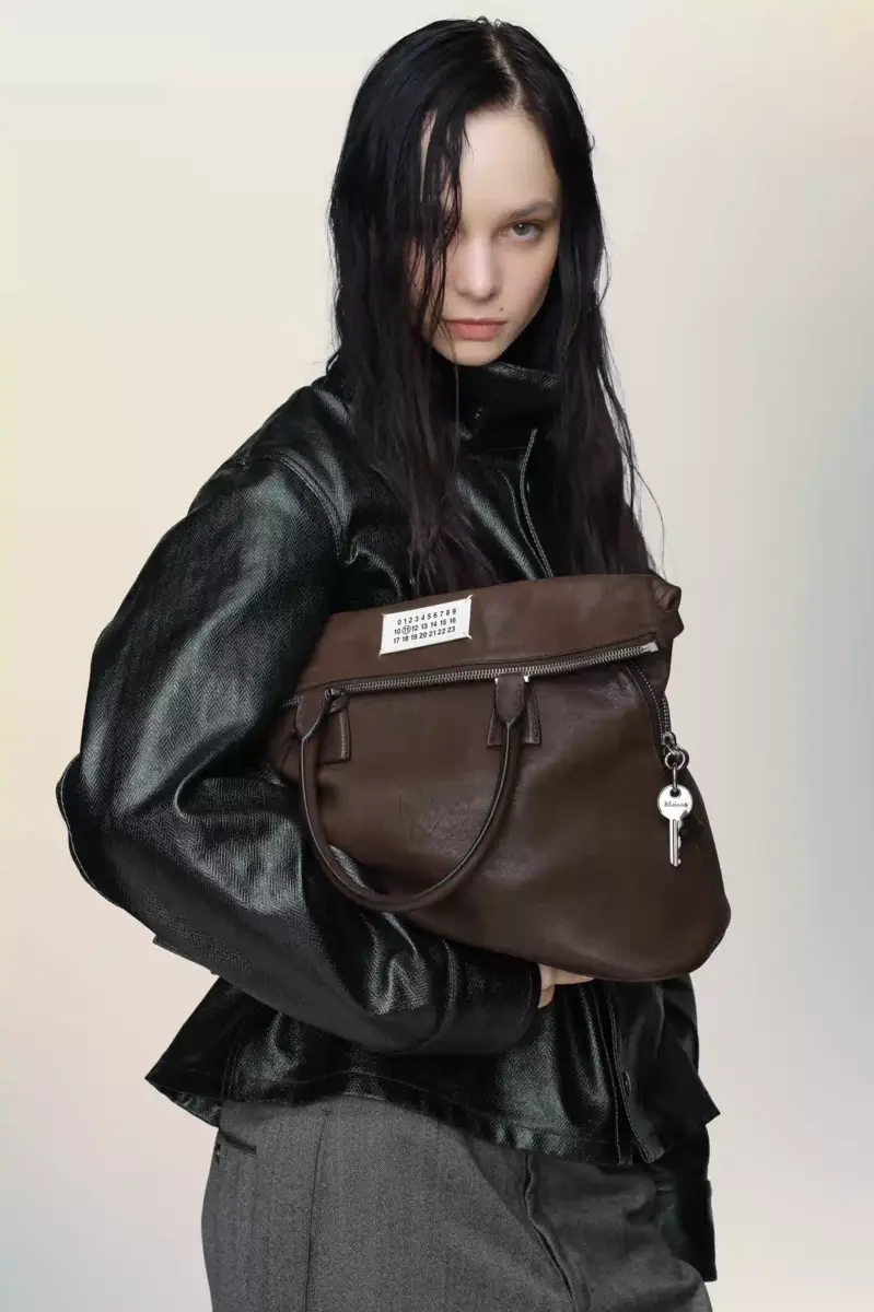 La borsa media 5AC Loved to Death, realizzata in morbida pelle lavata, presenta una struttura ammorbidita, una tracolla rimovibile e un manico superiore. La sua superficie è lavata, cerata e rifinita a mano, per una finitura ricca che evoca i segni del tempo. L’iconica linea 5AC prende il nome dalla parola francese “sac” (borsa) ed esplora il concetto di anonimato della fodera della Maison. La borsa è rifinita con l’opera d’arte numerica della Maison e i quattro punti distintivi, che richiamano i suoi codici emblematici.