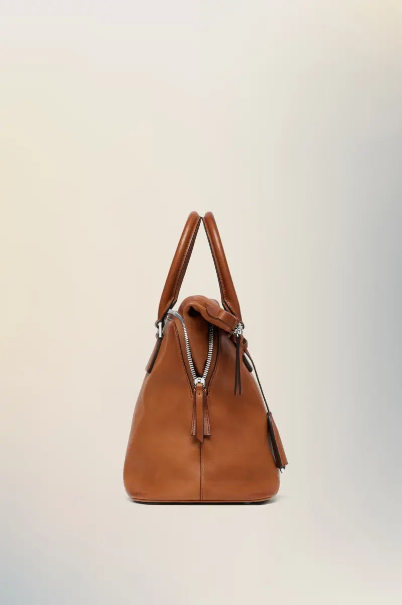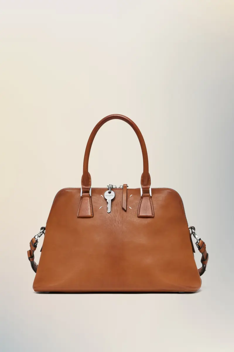 La borsa media 5AC Loved to Death, realizzata in morbida pelle lavata, presenta una struttura ammorbidita, una tracolla rimovibile e un manico superiore. La sua superficie è lavata, cerata e rifinita a mano, per una finitura ricca che evoca i segni del tempo. L’iconica linea 5AC prende il nome dalla parola francese “sac” (borsa) ed esplora il concetto di anonimato della fodera della Maison. La borsa è rifinita con l’opera d’arte numerica della Maison e i quattro punti distintivi, che richiamano i suoi codici emblematici.