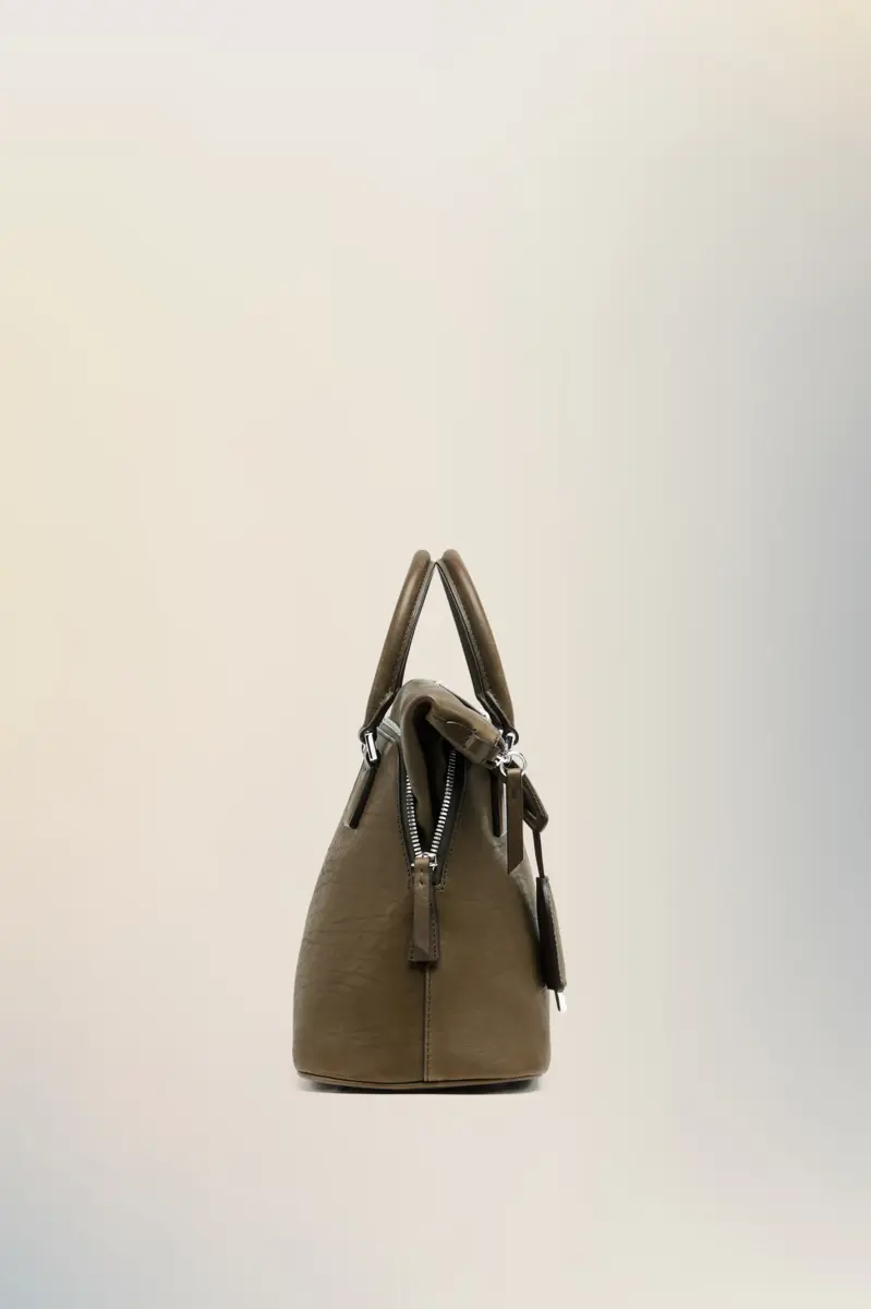 La mini 5AC Loved to Death, realizzata in pelle leggermente stropicciata, presenta una struttura morbida, una patta superiore ripiegata e dettagli metallici color argento. La sua superficie è lavata, cerata e rifinita a mano per evocare i segni del tempo. L’iconica linea 5AC prende il nome dalla parola francese “sac” (borsa) ed esplora il concetto di Anonimato della Fodera della Maison. La borsa è impreziosita dall’opera d’arte numerica della Maison e dai quattro punti distintivi, che richiamano i suoi codici emblematici.