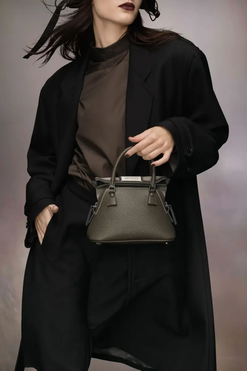 La 5AC classique micro, realizzata in pelle granata, presenta manici superiori e una tracolla a catena. È impreziosita dall’etichetta con logo sul davanti. L’iconica linea 5AC prende il nome dalla parola francese “sac” (borsa) ed esplora il concetto di anonimato della fodera della Maison. I rivetti metallici della borsa sono rivestiti in pelle a mano, con il metallo visibile solo dove necessario, per un aspetto pulito. I dettagli artigianali includono i bordi esposti della borsa dipinti a mano in tono con la pelle.