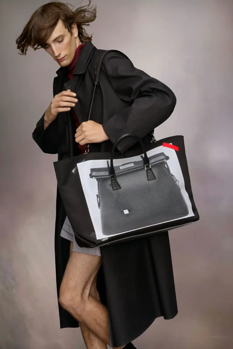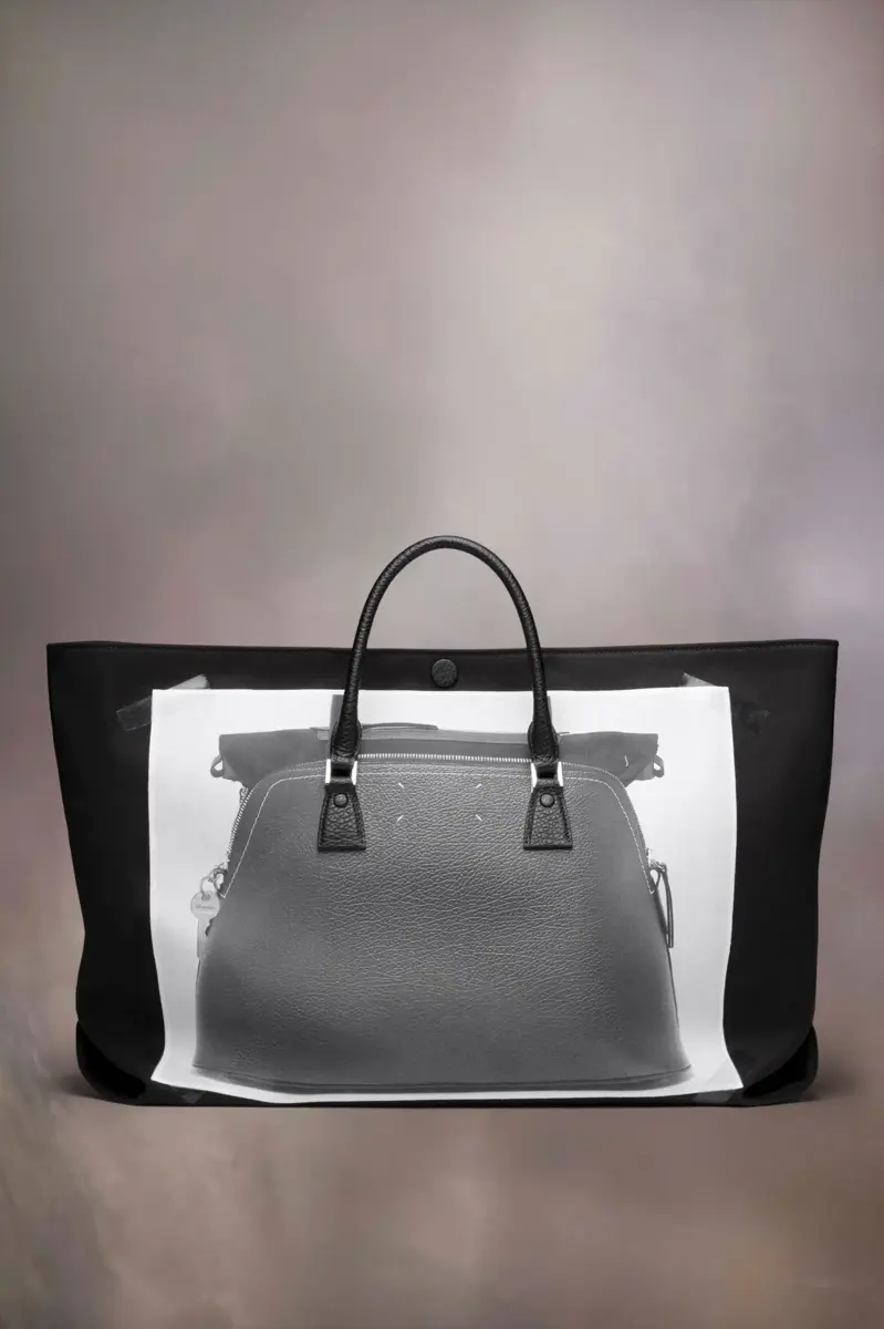 La borsa Trompe l’oeil 5AC classique media è realizzata in pelle e impermeabile stampato con un motivo trompe l’oeil 5AC, impreziosito dall’etichetta con logo sul davanti. L’iconica linea 5AC prende il nome dalla parola francese “sac” (borsa) ed esplora il concetto di anonimato della fodera della Maison. I rivetti metallici della borsa sono rivestiti in pelle a mano, lasciando il metallo visibile solo dove necessario, per un aspetto pulito. I dettagli artigianali includono i bordi esposti della borsa dipinti a mano in tono con la pelle.