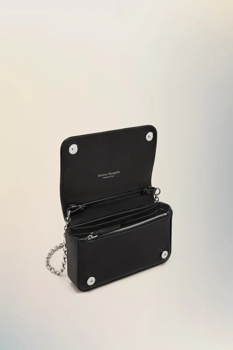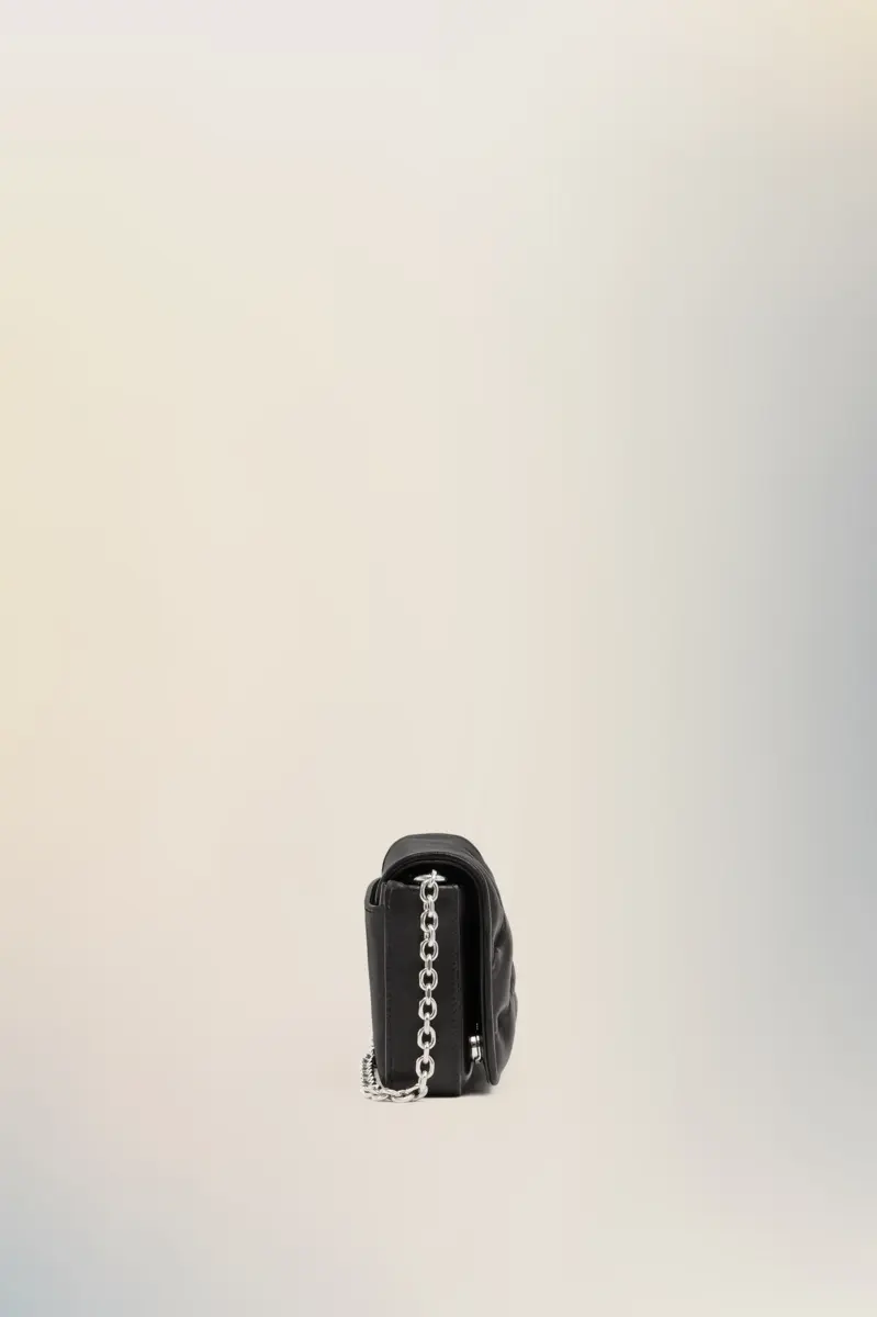 Evoluzione compatta della Glam Slam, questa borsa portafoglio incarna l’idea di glamour inconscio della Maison attraverso un esterno trapuntato e morbido come un cuscino. La sua forma strutturata si apre su più scomparti, chiusi da chiusure magnetiche e una zip lucida. La tracolla a catena e l’etichetta con logo numerico aggiungono contrasto: elegante, industriale e inaspettato.