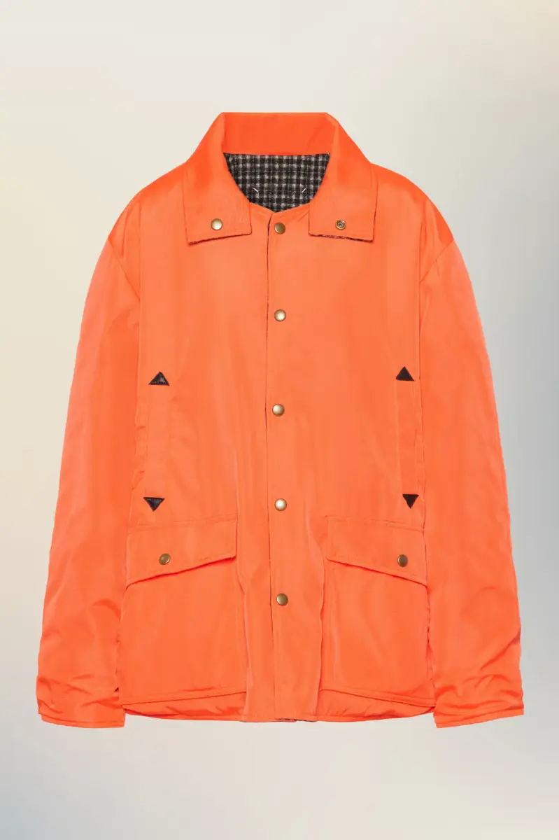 Una giacca reversibile che passa dalla tradizione della lana a quadri alla praticità del Cordura ad alta visibilità. La tecnica Shrink to Fit della Maison, che utilizza uno strato di lana cotta, rimodella delicatamente la silhouette. Un capo pensato per le transizioni: tra interno ed esterno, città e campagna. La firma di Maison Margiela, le quattro cuciture, è visibile sul retro; l’opposto di un’etichetta.