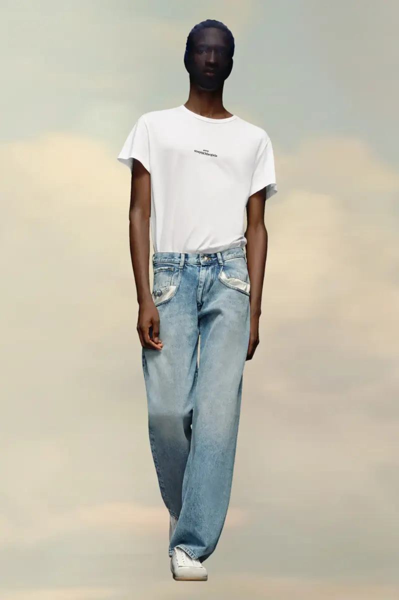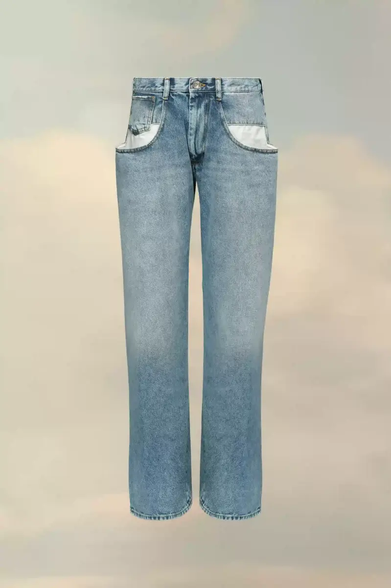 Il classico jeans in denim è stato rielaborato nella collezione autunno-inverno per rivelare un inserto bianco a contrasto sulle tasche anteriori, volutamente aperte per un impatto visivo notevole. Questo modello in cotone stonewashed offre una vestibilità comoda con gambe ampie e dritte. Le cinque tasche e i passanti per cintura sono impreziositi da una cucitura a contrasto color cammello, che corre anche lungo le cuciture.