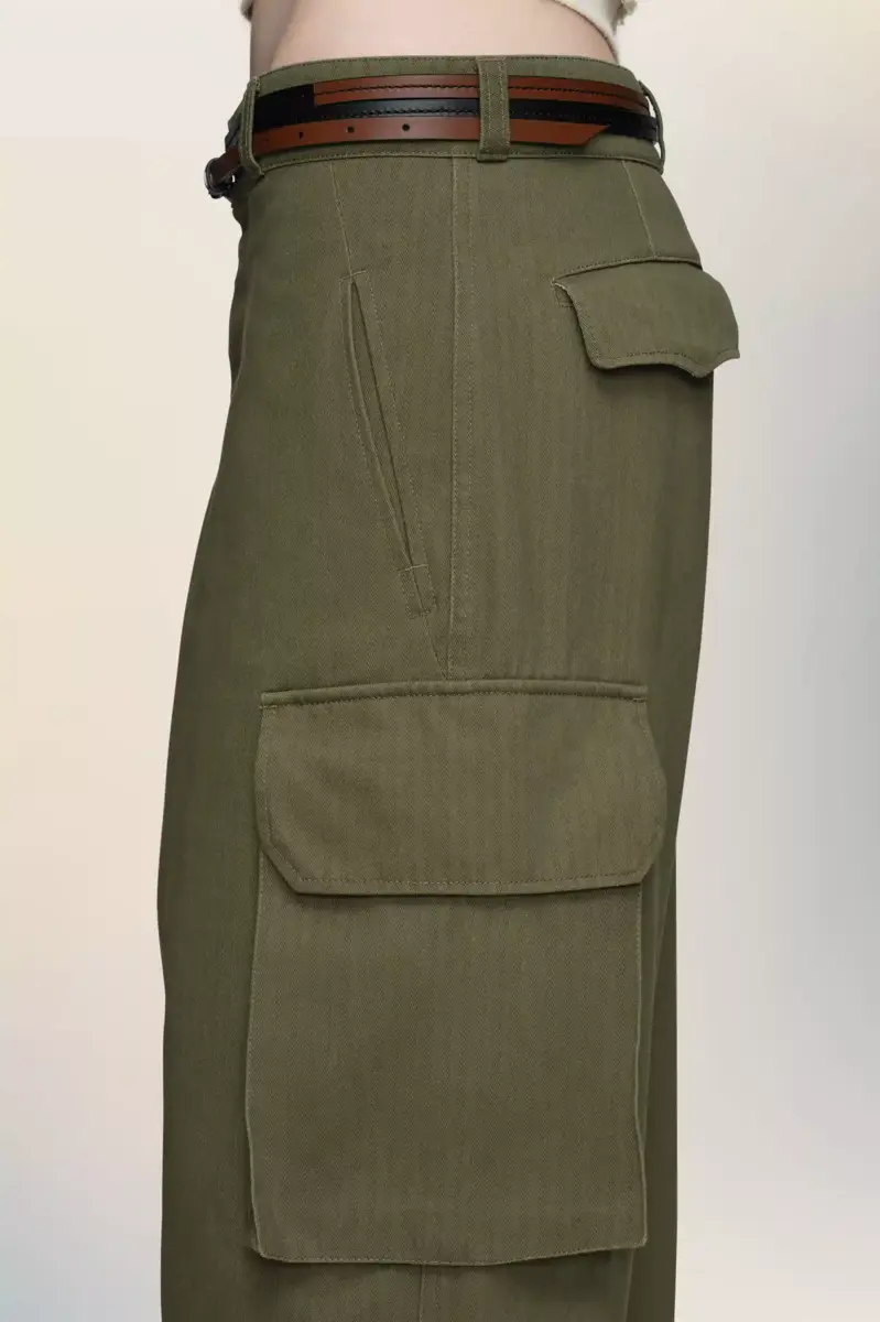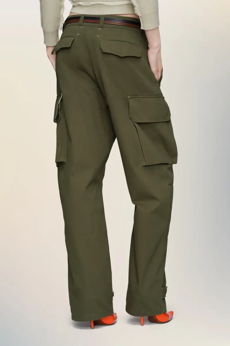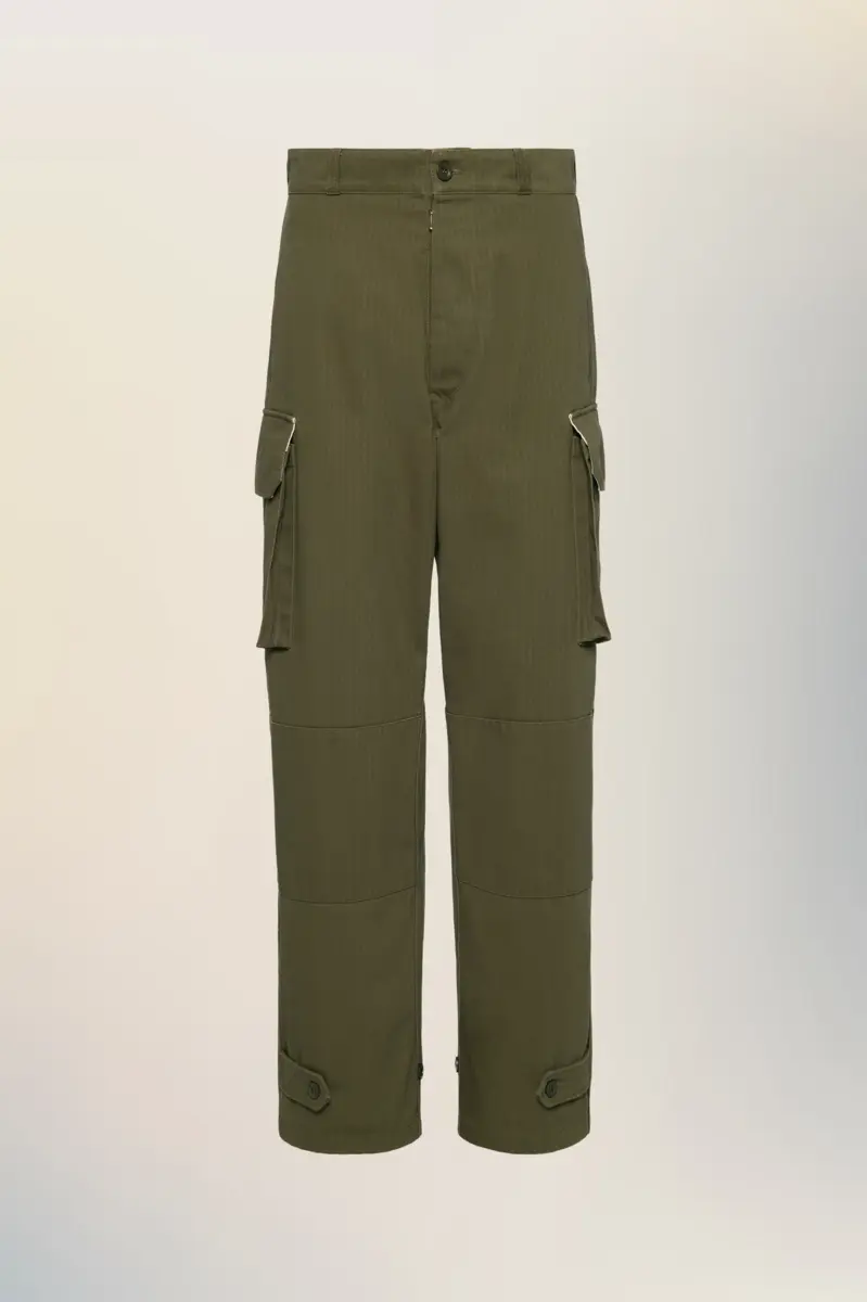 Ispirati agli iconici pantaloni da lavoro francesi M-47, questi pantaloni hanno una gamba dritta e cuciture articolate all’altezza del ginocchio. Le tasche con patta e gli orli regolabili con bottoni rendono omaggio al DNA funzionale del design militare. Il “Memory of the Pieses” sulle tasche sulle cosce simboleggia usura e storia, rivisitando una silhouette tradizionale attraverso dettagli moderni.