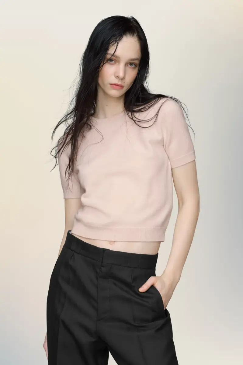 Top in maglia a maniche corte in pregiata lana vergine