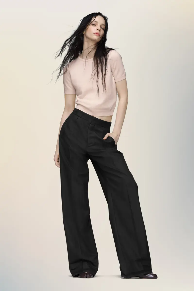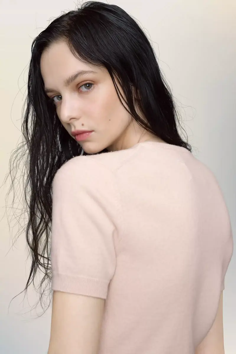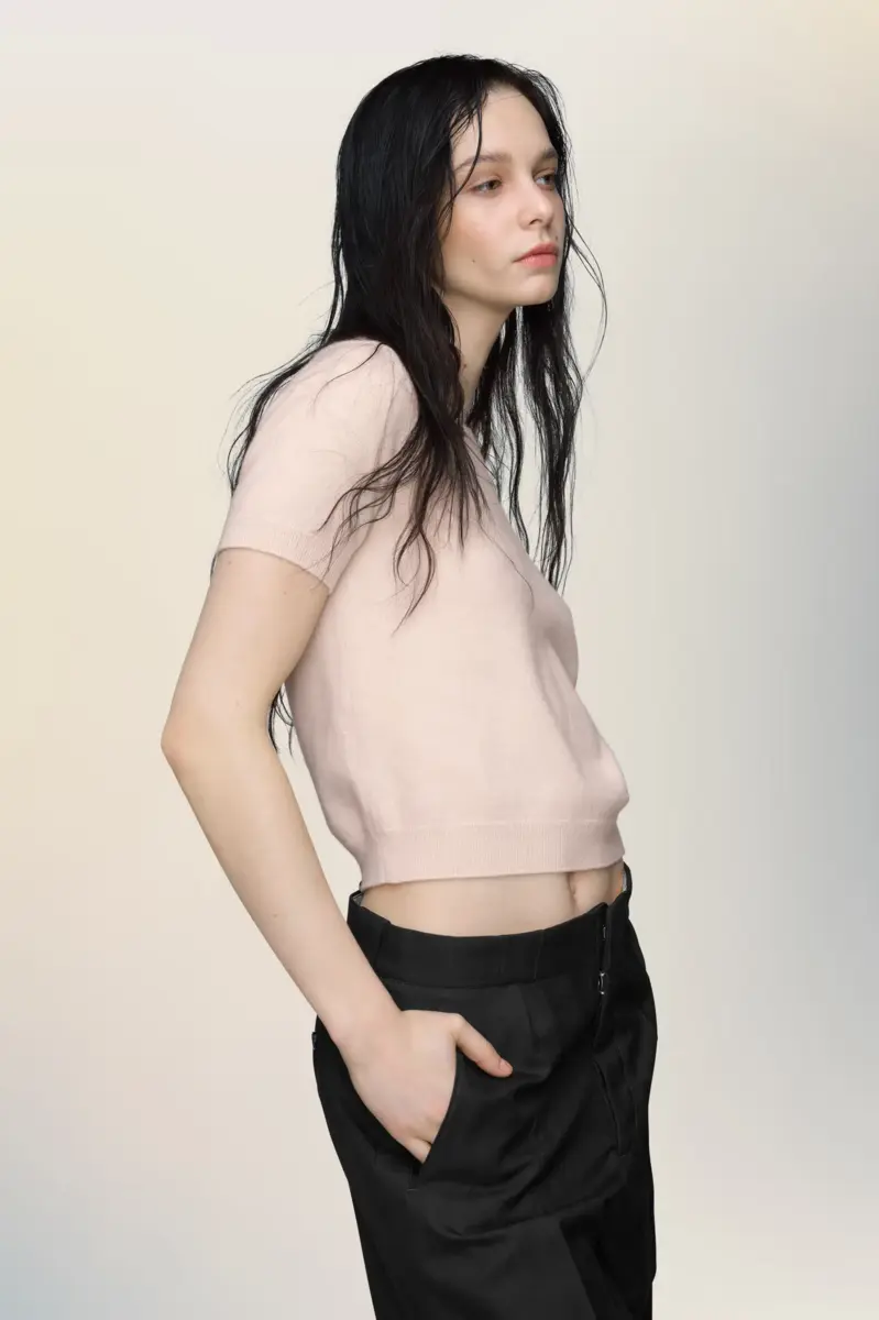 Unendo morbidezza e struttura, questo top in lana d’agnello è una fresca espressione di femminilità classica. Lavato eccessivamente per un effetto vissuto, la sua forma minimale è bilanciata da delicati toni di colore e da una leggerezza tattile. La firma di Maison Margiela, i quattro punti, è visibile sul retro, l’opposto di un’etichetta.