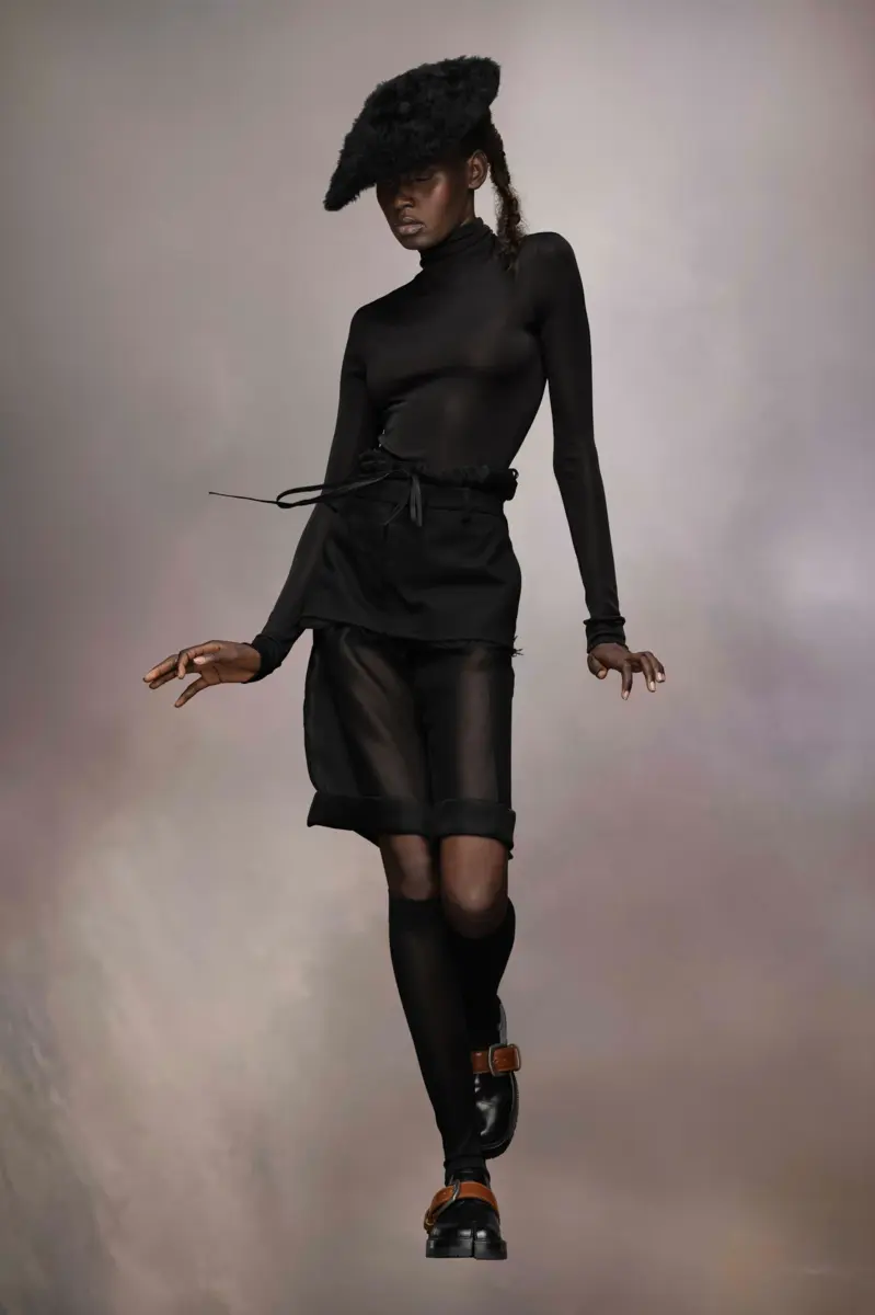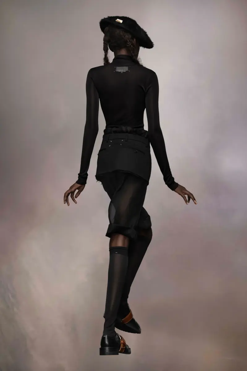 Il body è realizzato in jersey di viscosa con collo alto e maniche lunghe con polsini. La firma di Maison Margiela, i Quattro punti, è presente sul retro, l’opposto di un’etichetta.