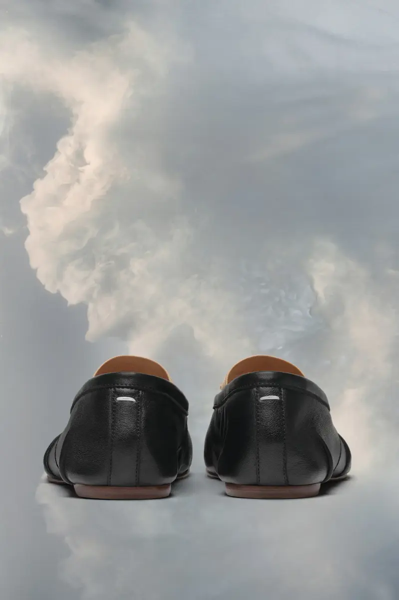 In pelle con pieghe fatte a mano, le ballerine presentano un elastico invecchiato e la punta divisa Tabi, ispirata alla tradizionale calza giapponese del XV secolo che porta lo stesso nome, lanciata per la collezione di debutto della Maison nel 1989. Cattura lo spirito avanguardista e insubordinato della Maison e si presenta come un classico della tradizione, continuamente esplorato in ogni collezione.