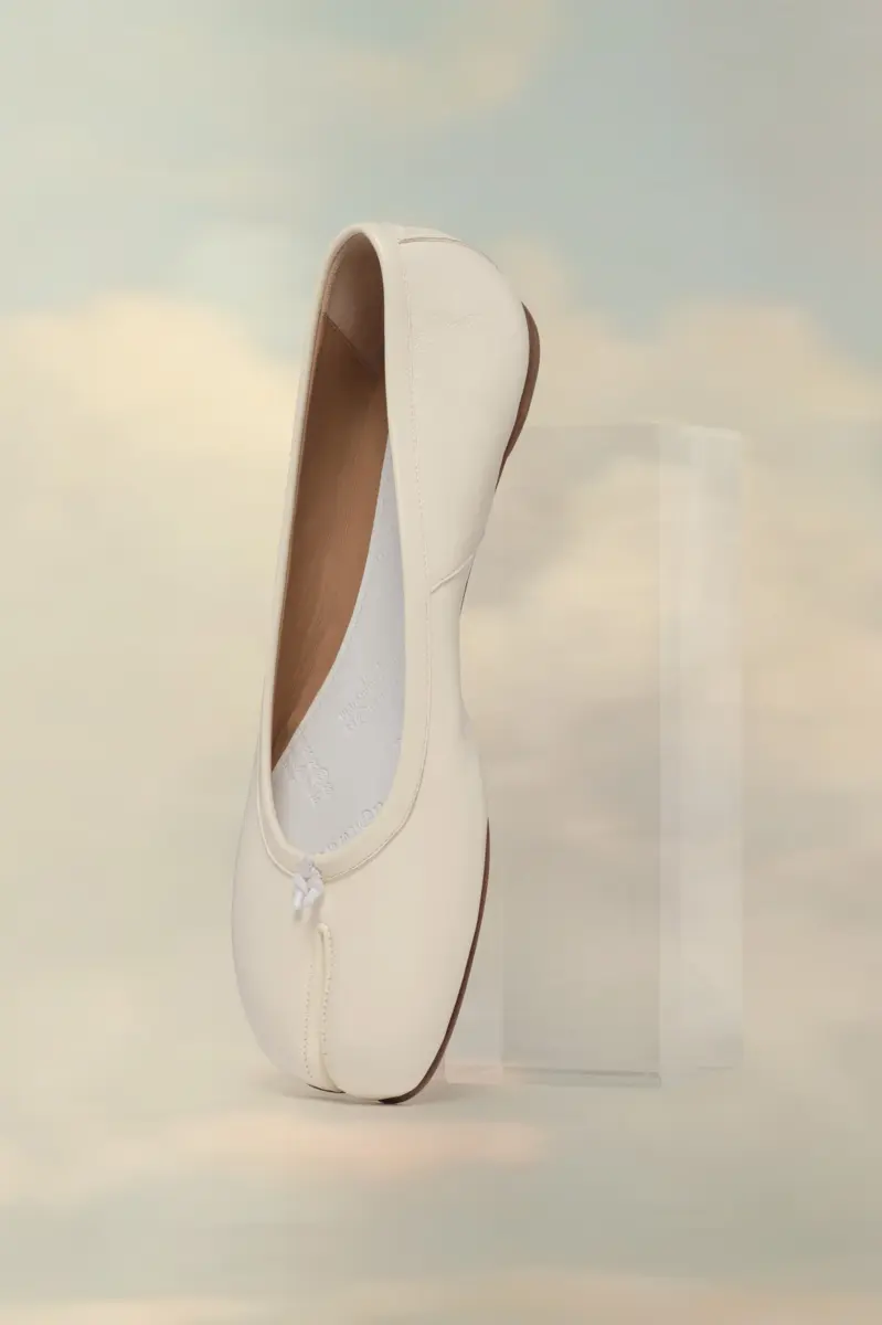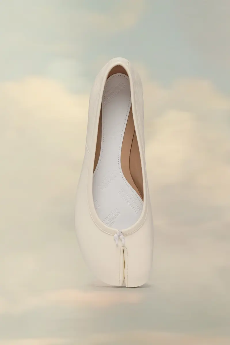 Le ballerine Tabi in morbida nappa presentano la punta divisa Tabi, ispirata all’omonimo calzino tradizionale giapponese del XV secolo, lanciato per la collezione di debutto della Maison nel 1989. Cattura lo spirito avanguardista e insubordinato della Maison e si presenta come un classico della tradizione, continuamente esplorato in ogni collezione.