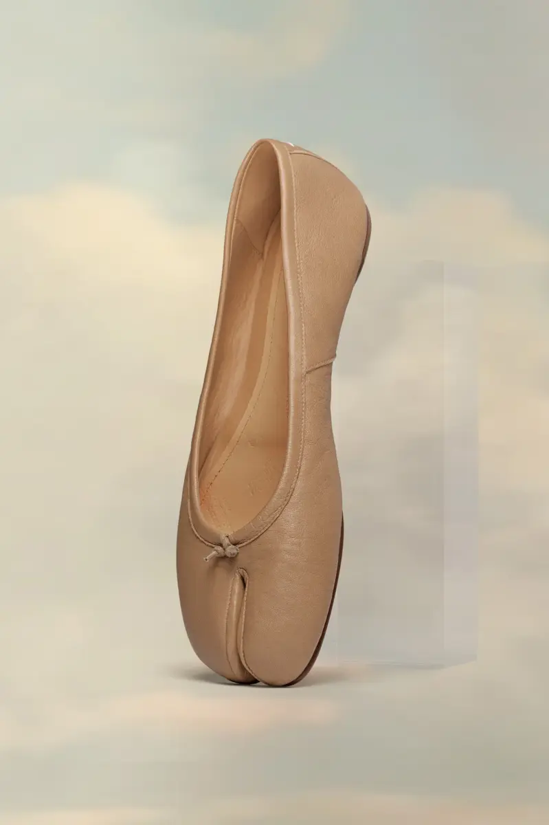 Le ballerine Tabi in morbida nappa presentano la punta divisa Tabi, ispirata all’omonimo calzino tradizionale giapponese del XV secolo, lanciato per la collezione di debutto della Maison nel 1989. Cattura lo spirito avanguardista e insubordinato della Maison e si presenta come un classico della tradizione, continuamente esplorato in ogni collezione.