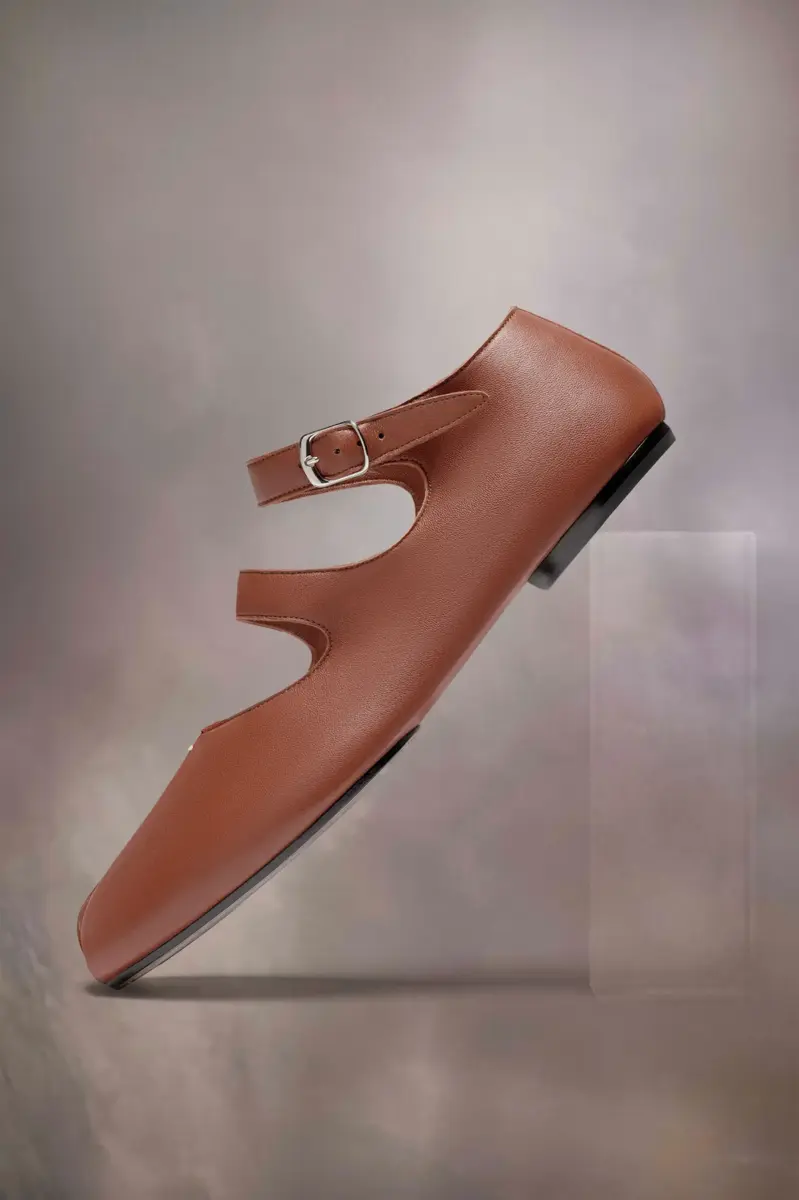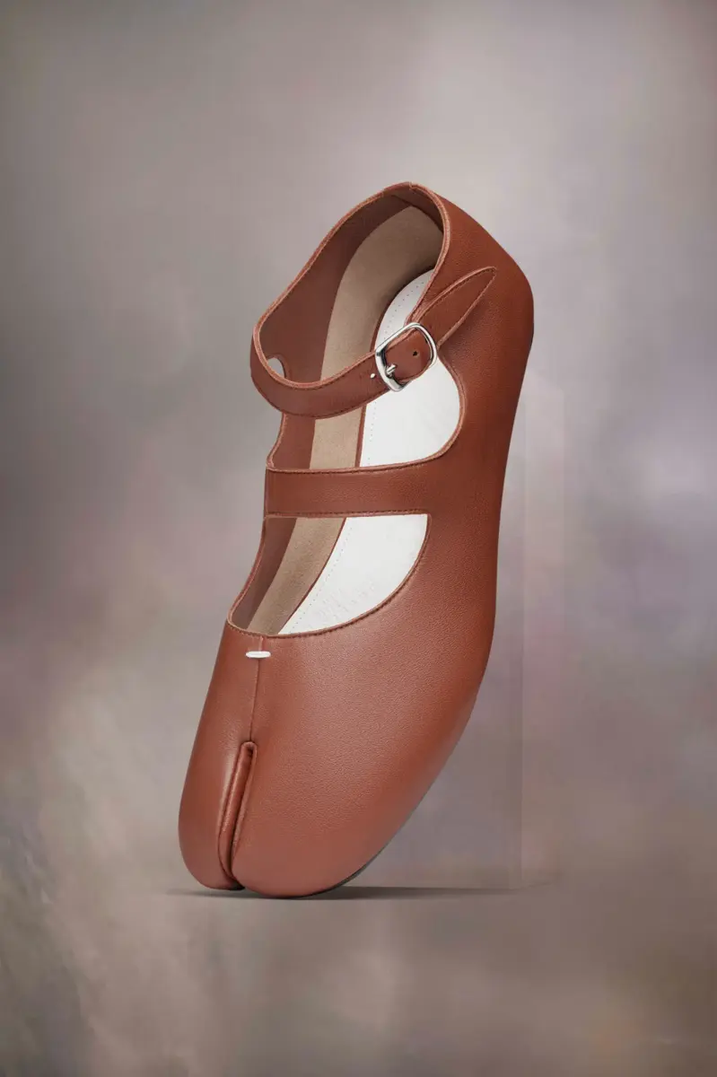 Iconica ballerina Tabi con punta divisa di Maison Margiela in morbida pelle. È impreziosita da un piccolo fiocco in corda e ha interno e suola in pelle.
