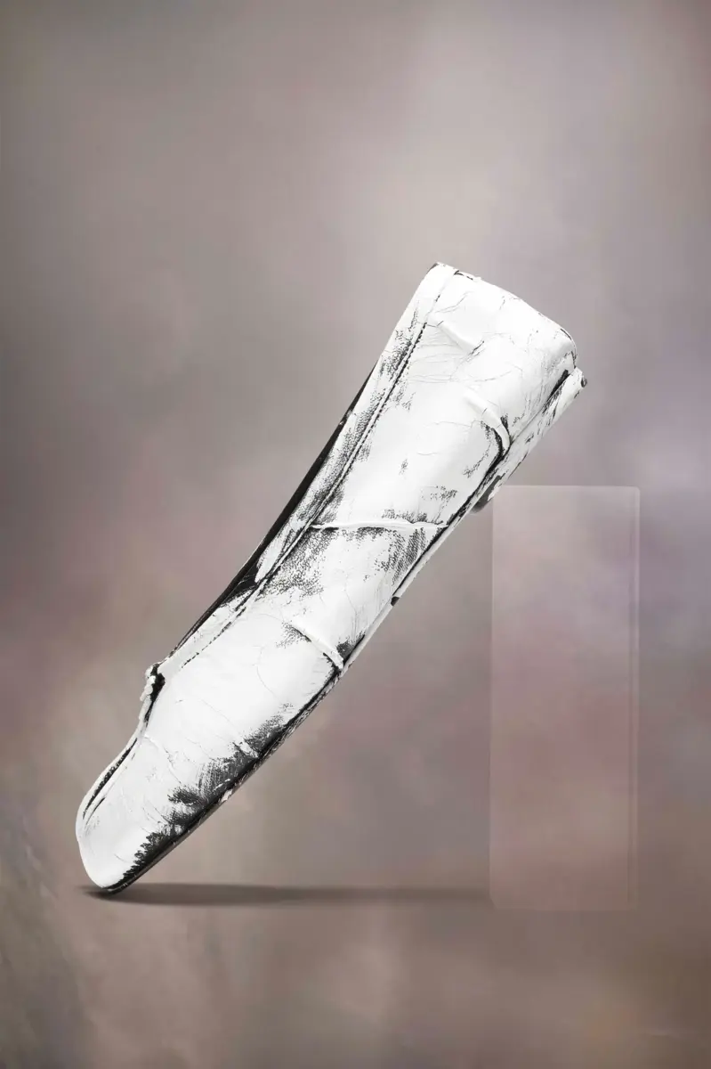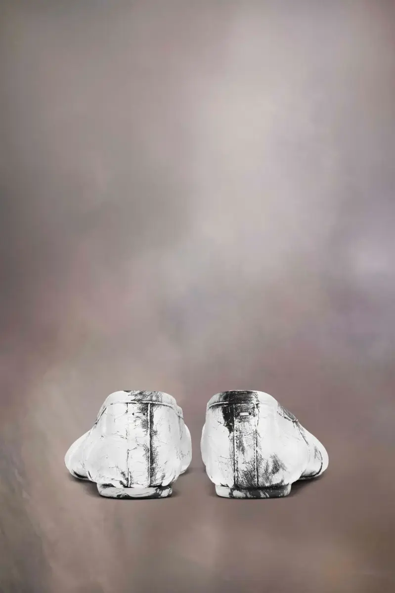 In nappa con trattamento dipinto a mano, la Maison presenta le nuove ballerine Tabi, che riprendono il design delle ballerine d’archivio. Sono realizzate con pieghe fatte a mano, lavorate manualmente per creare un effetto vintage artigianale sui lati. Presentano la punta divisa Tabi, ispirata al tradizionale calzino giapponese del XV secolo che porta lo stesso nome, lanciato per la collezione di debutto della Maison nel 1989. Cattura lo spirito avanguardista e insubordinato della Maison e si presenta come un classico della tradizione, continuamente esplorato in ogni collezione.