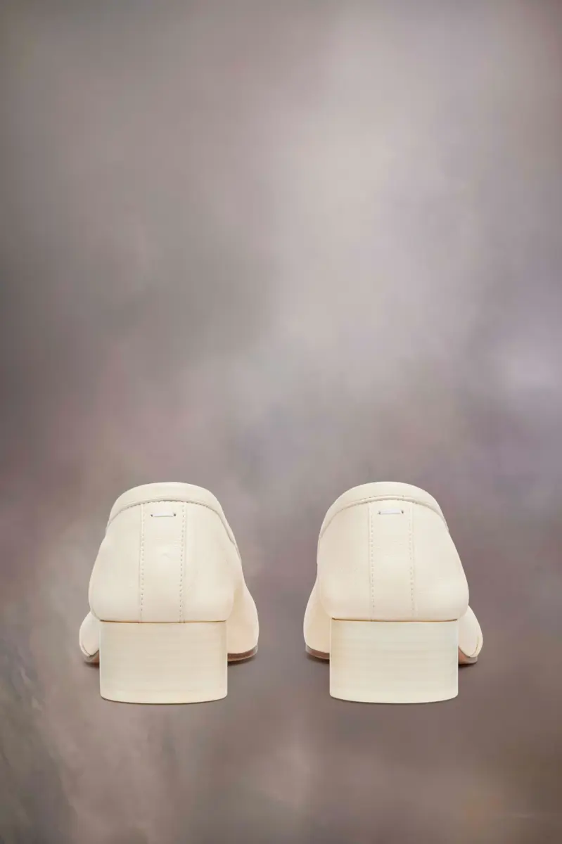 Maison Margiela presenta le nuove ballerine Tabi, il cui design trae ispirazione dalle ballerine presenti negli archivi della maison. Sono realizzate in morbida nappa con un trattamento used artigianale applicato su pieghe, base e cuciture, lavorato manualmente per creare un effetto vintage artigianale. Presentano la punta divisa Tabi, ispirata al tradizionale calzino giapponese del XV secolo che porta lo stesso nome, lanciato per la collezione di debutto della Maison nel 1989. Cattura lo spirito avanguardista e insubordinato della Maison e si presenta come un classico della tradizione, continuamente esplorato in ogni collezione.