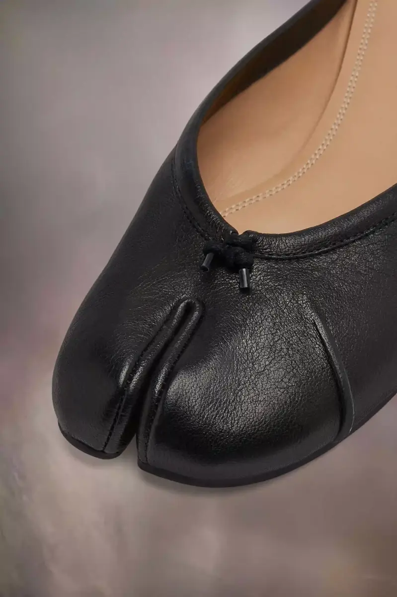 In pelle con pieghe fatte a mano, la mule Tabi presenta un trattamento usurato e la punta divisa Tabi, ispirata al tradizionale calzino giapponese del XV secolo che porta lo stesso nome, lanciato per la collezione di debutto della Maison nel 1989. Cattura lo spirito avanguardista e insubordinato della Maison e si presenta come un classico della tradizione, continuamente esplorato in ogni collezione.