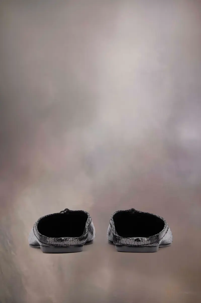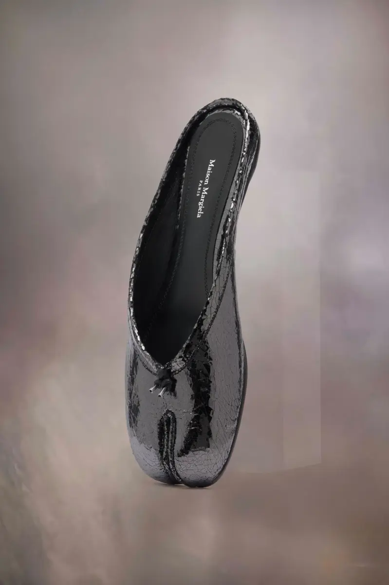 Maison Margiela presenta le Tabi New Ballerinas, il cui design trae spunto dalle ballerine presenti negli archivi della maison. Con una finitura a specchio rotto e una silhouette a mule, il paio presenta la punta divisa Tabi, ispirata al tradizionale calzino giapponese del XV secolo che porta lo stesso nome, lanciato per la collezione di debutto della Maison nel 1989. Cattura lo spirito avanguardista e insubordinato della Maison e si presenta come un classico della tradizione, continuamente esplorato in ogni collezione.