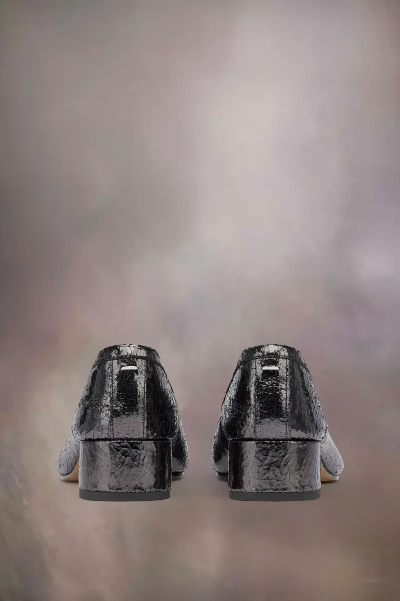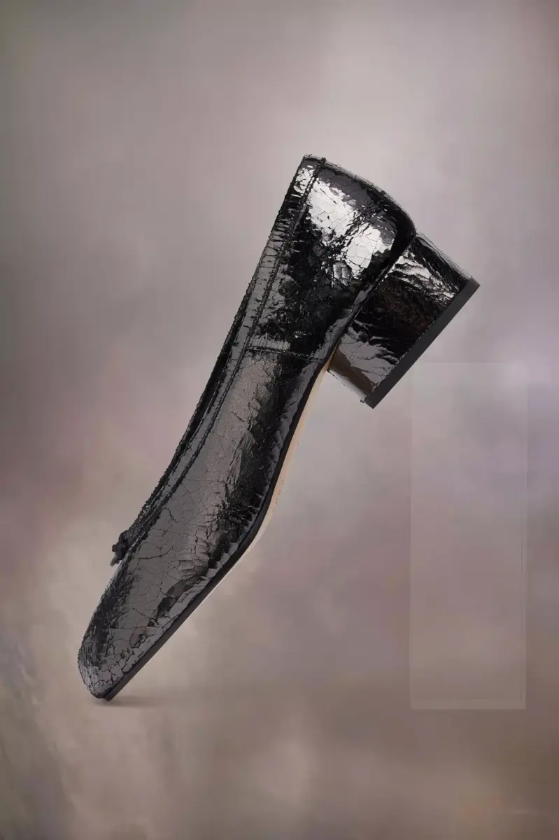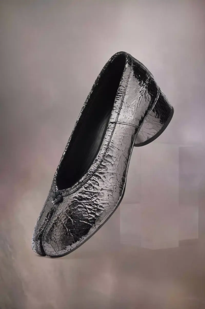 Maison Margiela presenta le nuove ballerine Tabi, il cui design trae spunto dalle ballerine presenti negli archivi della maison. In pelle con finitura a specchio rotto, con piccolo tacco, il paio presenta la punta divisa Tabi, ispirata al tradizionale calzino giapponese del XV secolo che porta lo stesso nome, lanciato per la collezione di debutto della Maison nel 1989. Cattura lo spirito avanguardista e insubordinato della Maison e si presenta come un classico della tradizione, continuamente esplorato in ogni collezione.