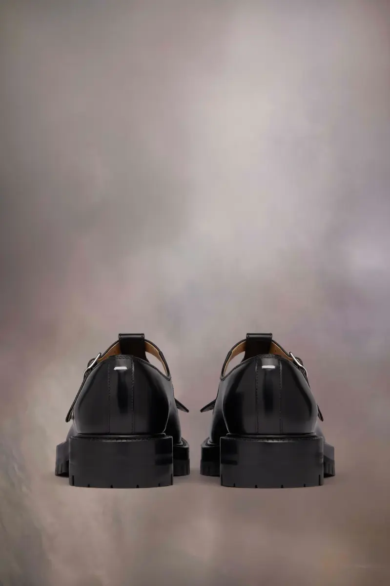 Dotate di suola con tacchetti e decorazione con frange sul davanti, le scarpe Mary-Jane sono realizzate in pelle spazzolata. Il paio presenta la punta divisa Tabi, ispirata al tradizionale calzino giapponese del XV secolo che porta lo stesso nome, lanciato per la collezione di debutto della Maison nel 1989. Cattura lo spirito avanguardista e insubordinato della Maison e si presenta come un classico della tradizione, continuamente esplorato in ogni collezione.