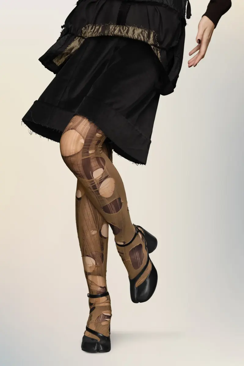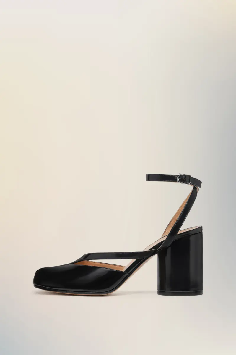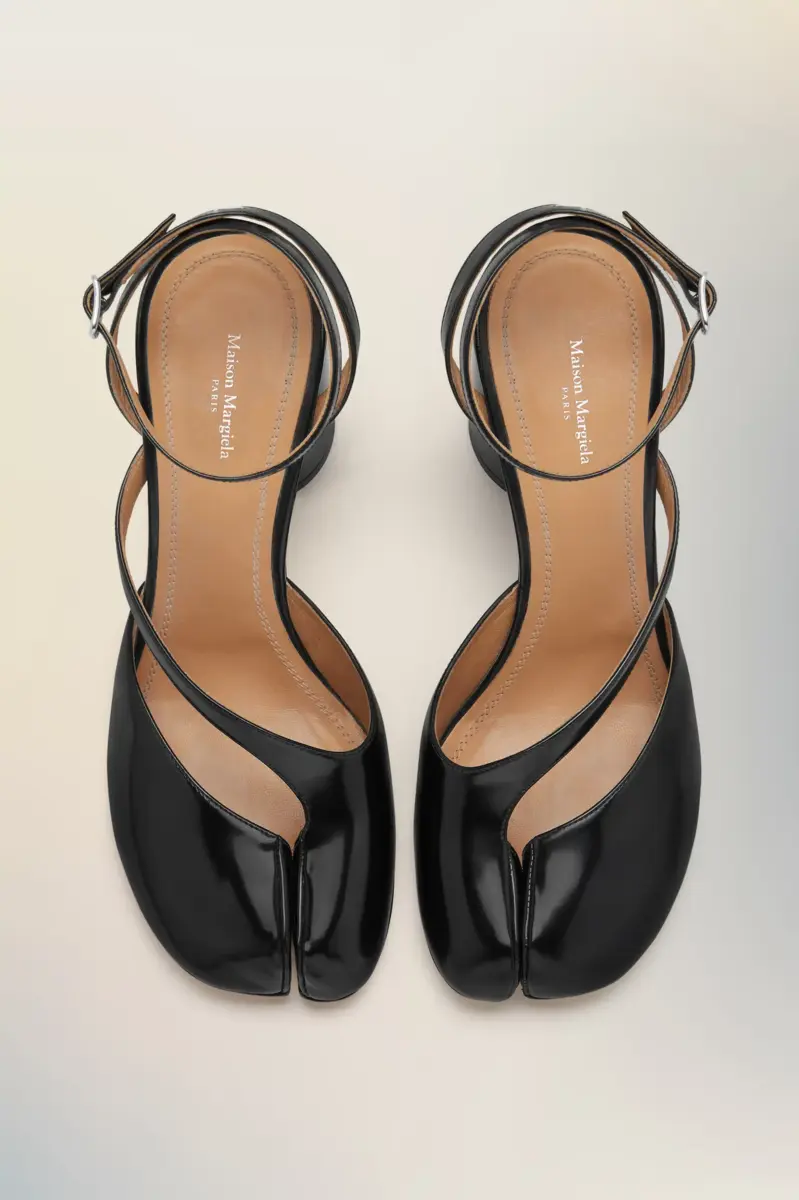 Realizzati in pelle spazzolata, i sandali cut-out presentano un tacco cilindrico di 8 cm, cinturino regolabile alla caviglia e la forma Tabi con punta divisa, ispirata al tradizionale calzino giapponese del XV secolo che porta lo stesso nome, lanciato per la collezione di debutto della Maison nel 1989. Catturano lo spirito avanguardista e insubordinato della Maison e si presentano come un classico della tradizione, continuamente esplorato in ogni collezione. La cucitura distintiva di Maison Margiela appare sul retro; l’opposto di un’etichetta.