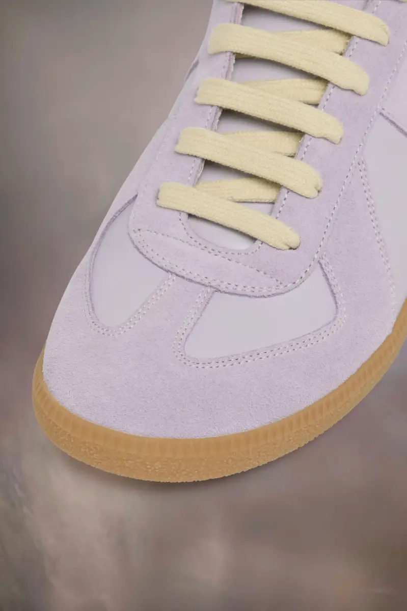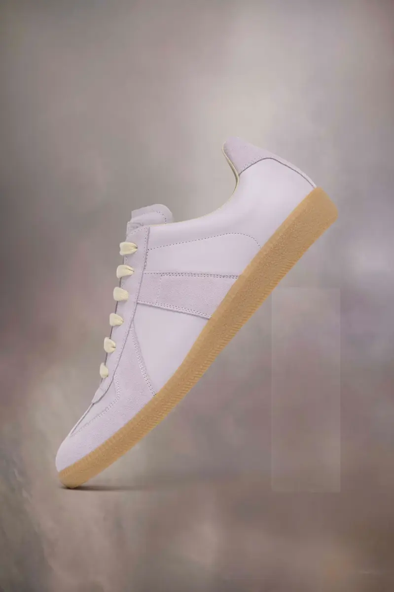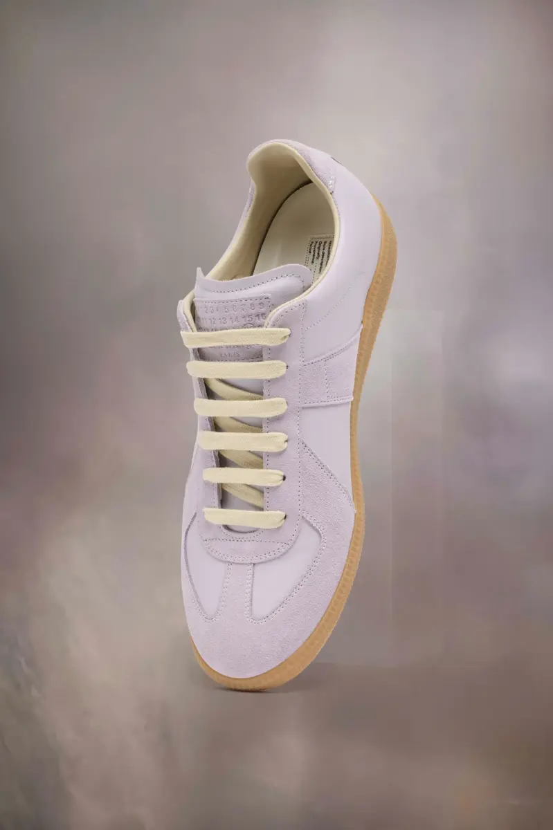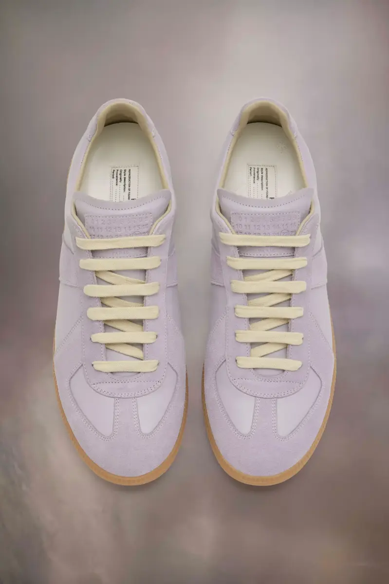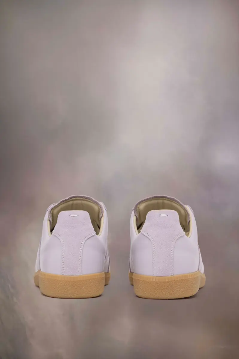 Le sneaker Replica in nappa e suede con suola color miele. Le iconiche sneaker Replica della Maison si ispirano alle scarpe sportive austriache degli anni Settanta. I dettagli delle Replica vengono continuamente rielaborati in linea con le ispirazioni della stagione.