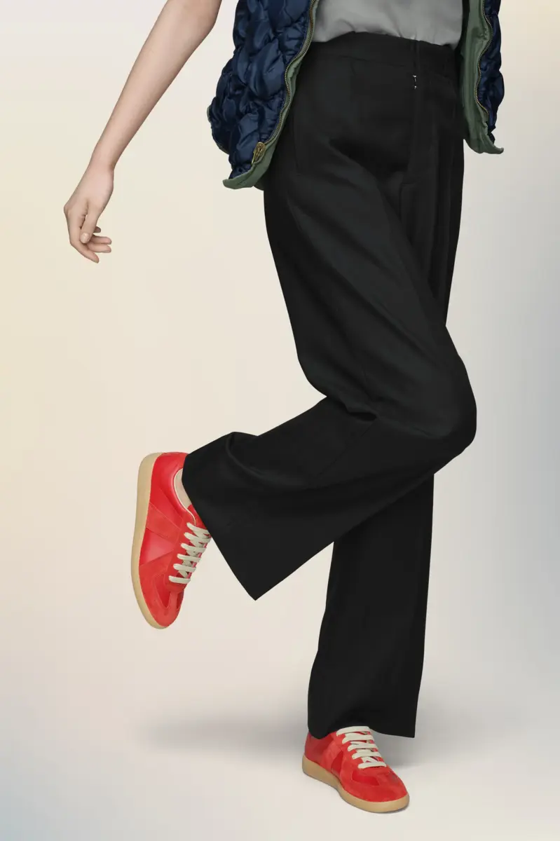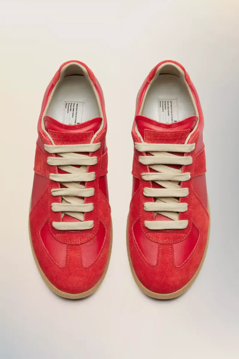 Le sneaker Replica in nappa e suede con suola color miele. Le iconiche sneaker Replica della Maison si ispirano alle scarpe sportive austriache degli anni Settanta. I dettagli delle Replica vengono continuamente rielaborati in linea con le ispirazioni della stagione.