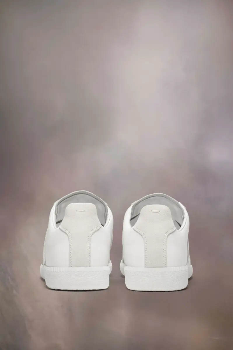 Le sneaker Replica sono realizzate in suede e nappa rovesciata con suola tono su tono. Il retro presenta una singola cucitura bianca che mostra la firma di Maison Margiela. Le iconiche sneaker Replica della Maison si ispirano alle scarpe sportive austriache degli anni Settanta. I dettagli delle Replica vengono continuamente rielaborati in linea con le ispirazioni della stagione.