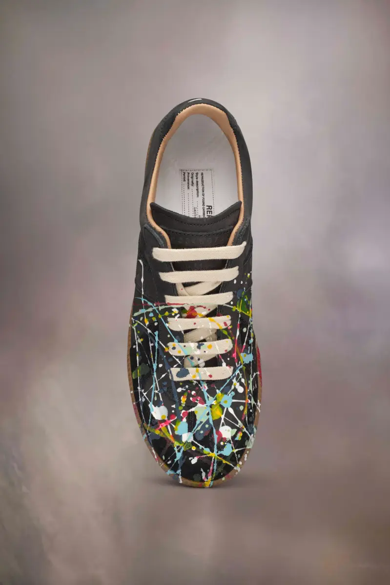 Le sneaker Replica in pelle nabuk e velluto presentano un design a schizzi di vernice. Le iconiche sneaker Replica della Maison si ispirano alle scarpe sportive austriache degli anni Settanta. I dettagli delle scarpe Replica vengono continuamente rielaborati in linea con le ispirazioni della stagione.