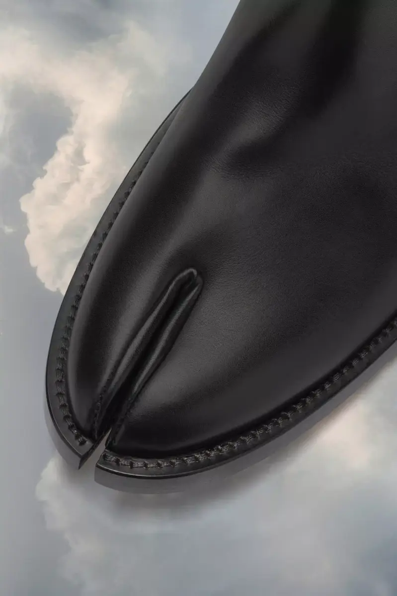 Gli stivali Tabi Western sono realizzati in pelle di vitello e presentano una punta a mandorla, una nuova versione dell’iconico modello. Sul retro è presente la cucitura bianca distintiva di Maison Margiela. Il modello Tabi con punta divisa si ispira al tradizionale calzino giapponese del XV secolo che porta lo stesso nome, lanciato per la collezione di debutto della Maison nel 1989. Cattura lo spirito avanguardista e insubordinato della Maison e si presenta come un classico della tradizione, continuamente esplorato in ogni collezione.