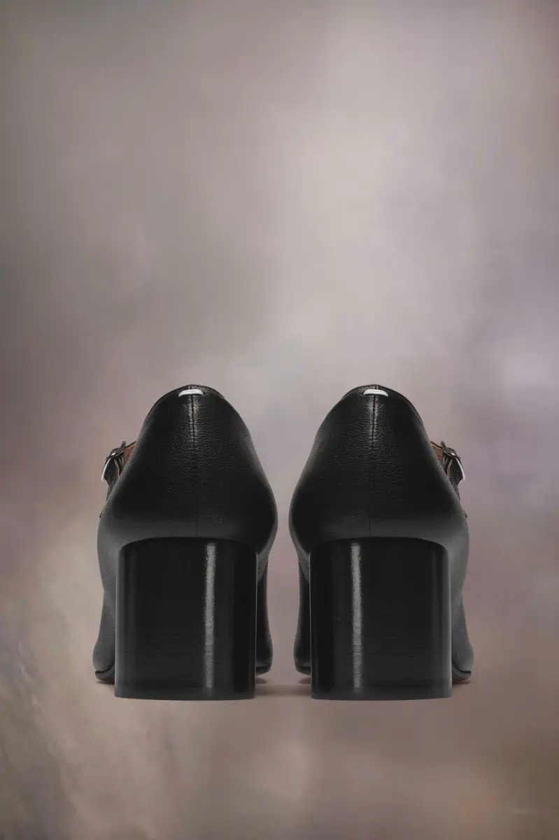 In morbida nappa con cinturino anteriore regolabile, le scarpe Mary Jane presentano un tacco cilindrico di 6 cm e la punta divisa Tabi, ispirata al tradizionale calzino giapponese del XV secolo che porta lo stesso nome, lanciato per la collezione di debutto della Maison nel 1989. Cattura lo spirito avanguardista e insubordinato della Maison e si presenta come un classico della tradizione, continuamente esplorato in ogni collezione.