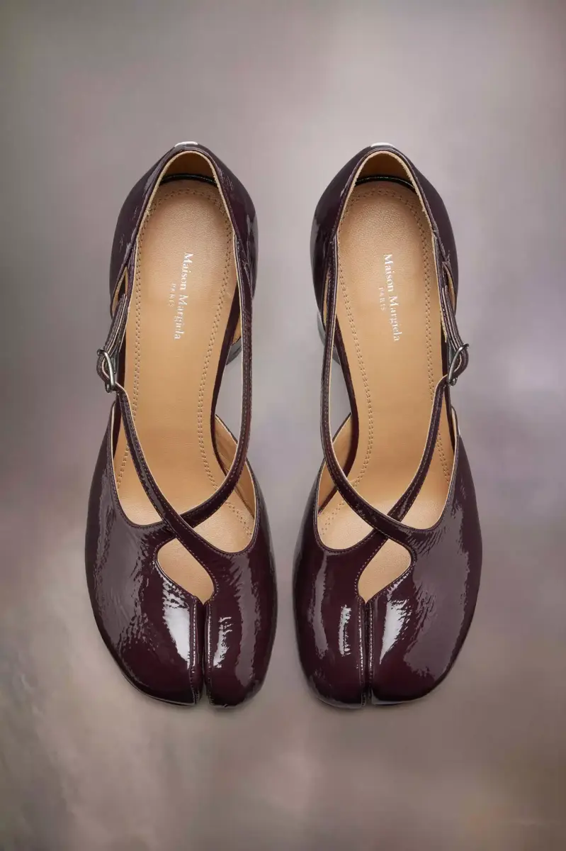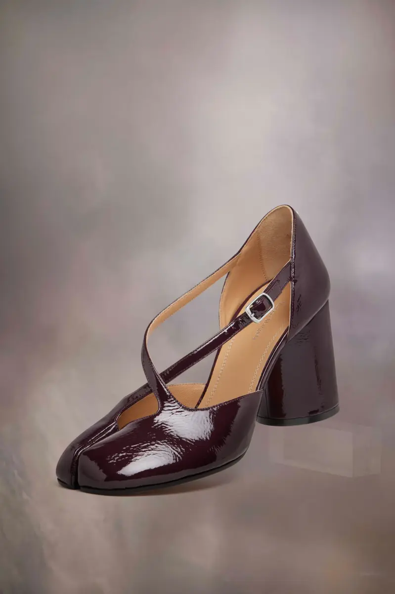 Realizzati in morbida pelle verniciata, i sandali cut-out presentano un tacco cilindrico di 8 cm, cinturino regolabile alla caviglia e l’iconica forma Tabi con punta divisa. Ispirati all’omonima calza tradizionale giapponese del XV secolo, sono stati lanciati per la collezione di debutto della Maison nel 1989 e catturano lo spirito avanguardista e insubordinato della Maison. Un classico della tradizione, che viene continuamente rivisitato ogni stagione. La cucitura distintiva di Maison Margiela appare sul retro.