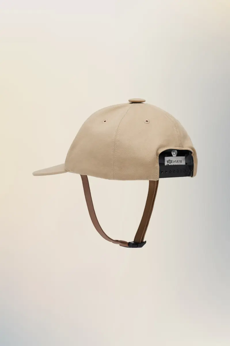Questo berretto da equitazione in cotone distilla influenze equestri in una silhouette minimale. La visiera curva e il cinturino tono su tono suggeriscono una discreta praticità, in linea con la rivisitazione dei capi essenziali della collezione. La firma di Maison Margiela, le quattro cuciture, è visibile lateralmente; l’opposto di un’etichetta.