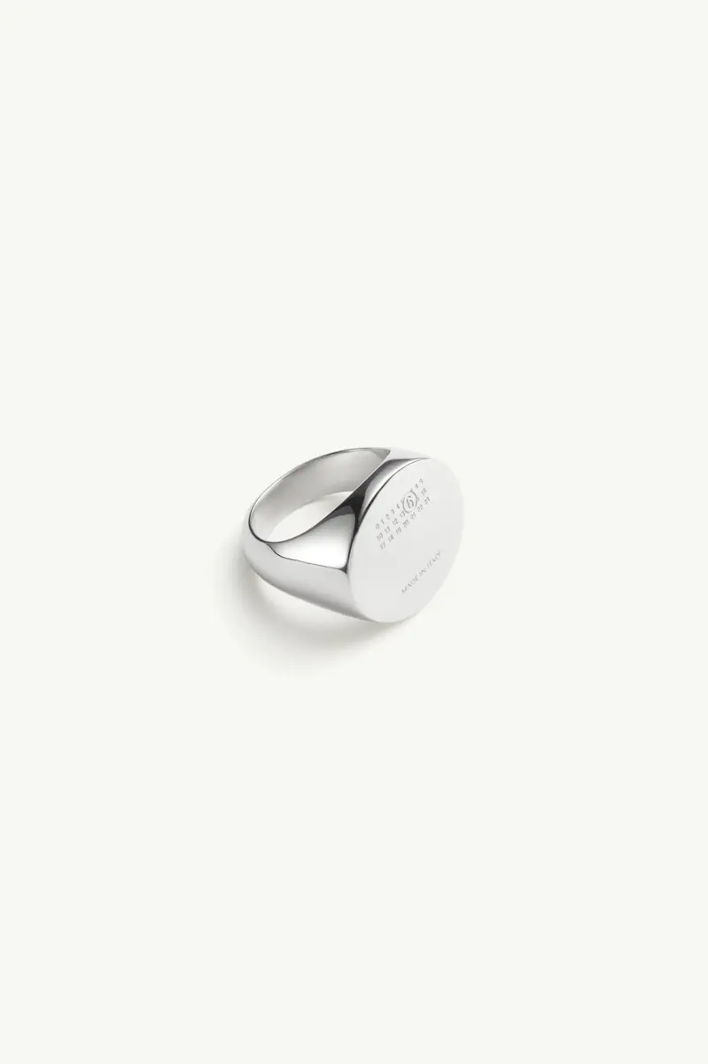 Questo anello con sigillo è caratterizzato dalla sua superficie ovale pulita e dalla finitura lucida. Con l’incisione della firma numerica MM6, invita a un secondo sguardo pur mantenendo una presenza sobria.