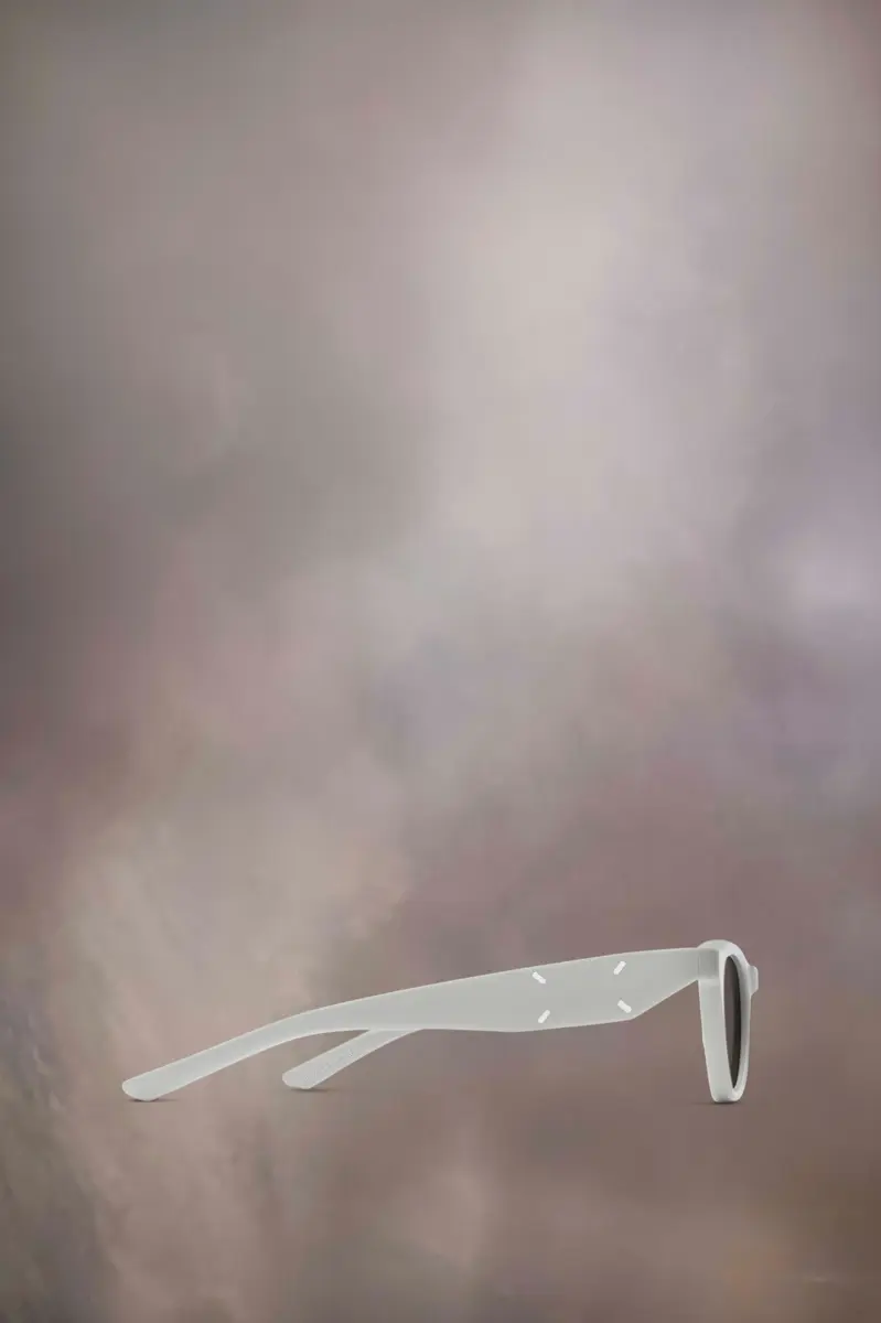 Quattro punti bianchi ai lati delle aste, un omaggio al dettaglio iconico di Maison Margiela