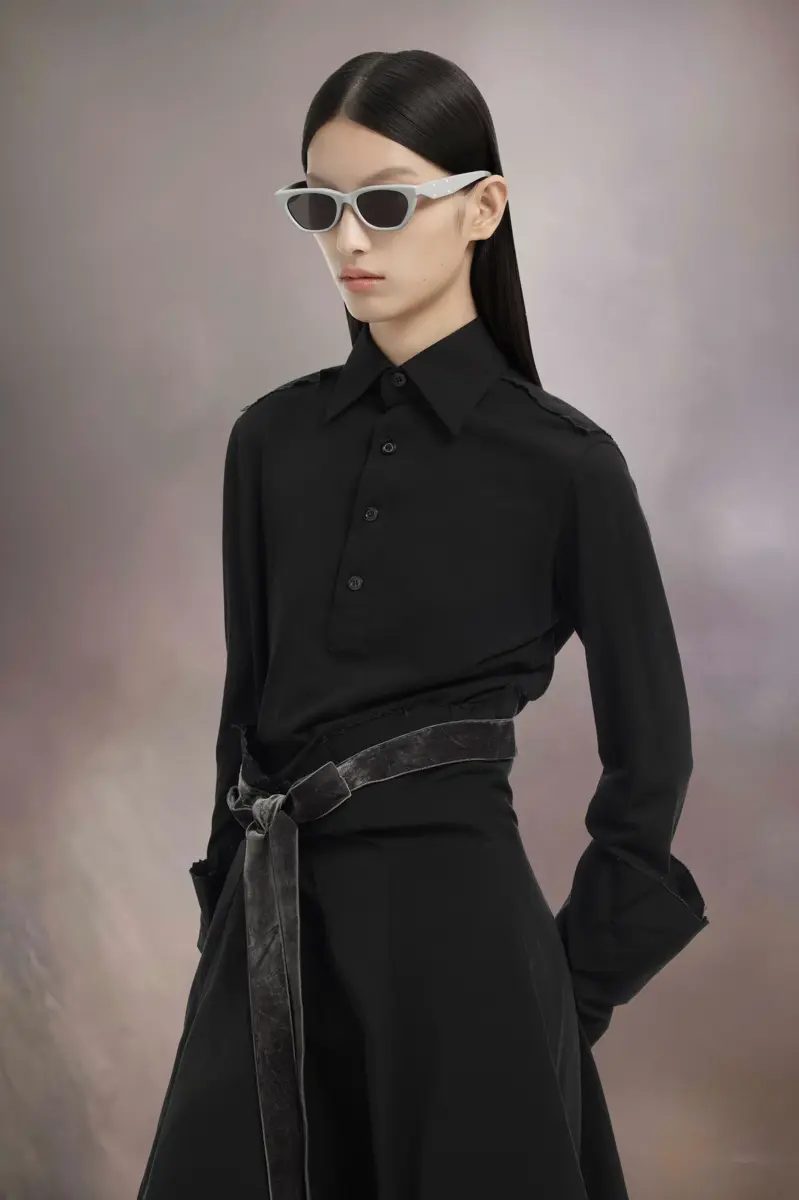 La terza collaborazione Maison Margiela x Gentle Monster è un’esplorazione di classicismo e futurismo, l’intersezione che unisce entrambi i marchi. Gli occhiali da sole MM208 G12 presentano un design a occhio di gatto e aste spigolose. La firma di Maison Margiela, i Quattro Punti, appare sulle aste, l’opposto di un’etichetta.