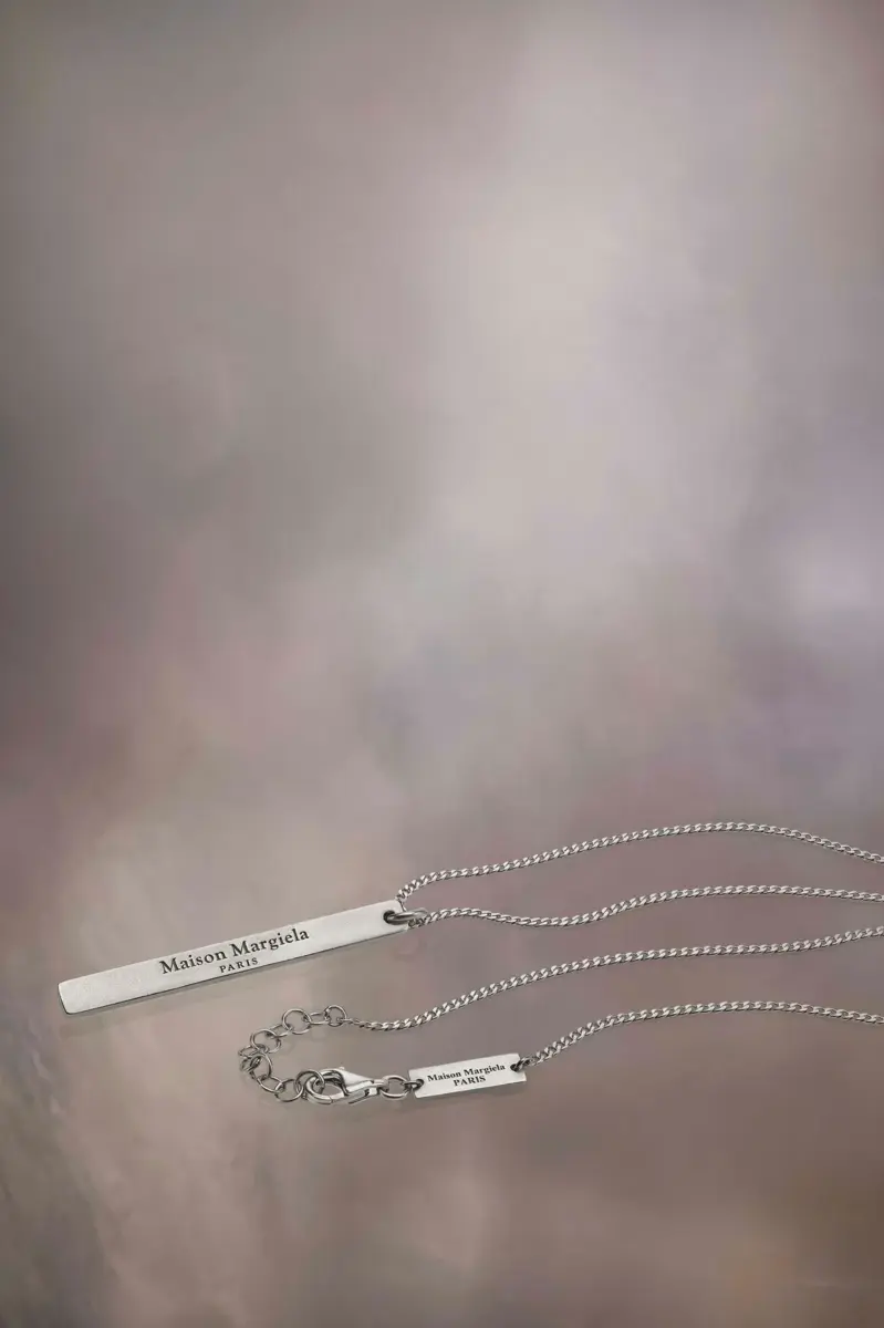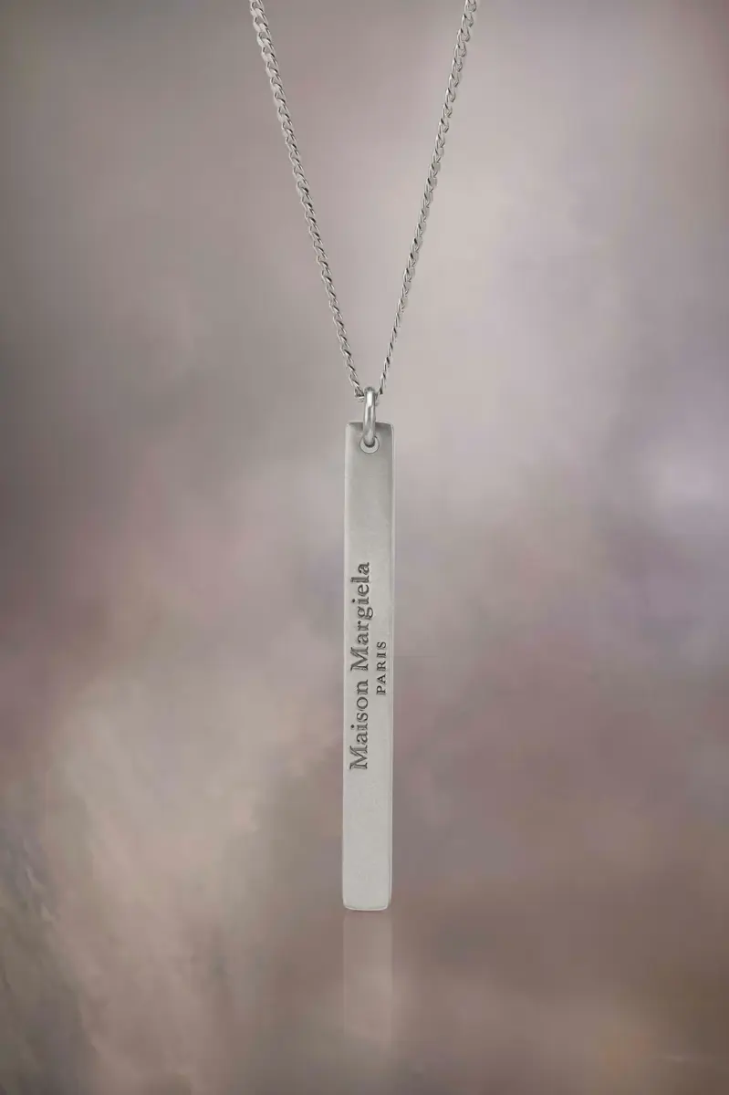Realizzata in argento sterling semilucido, la collana presenta un pendente lungo e sottile inciso con il logo Maison Margiela.