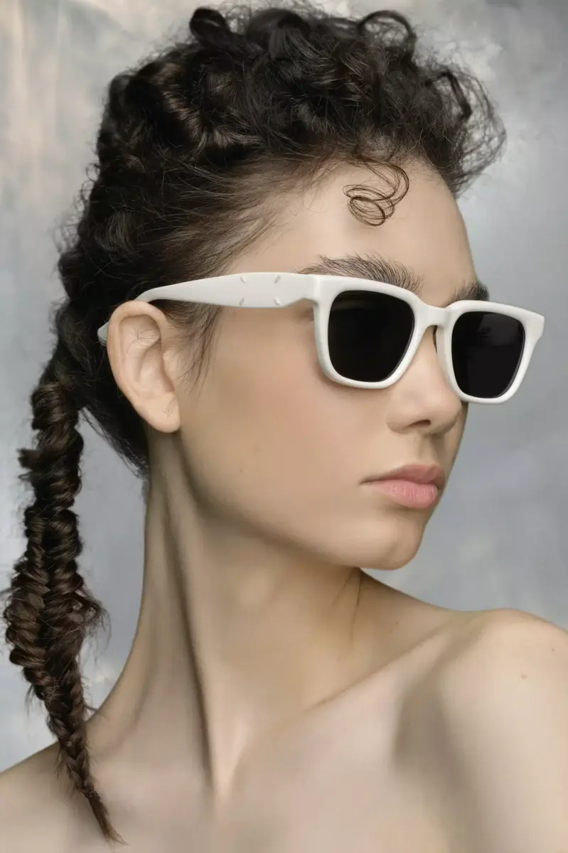 La collaborazione Maison Margiela x Gentle Monster presenta i modelli originali del marchio di occhiali che incorporano veri dettagli infilati dei quattro punti distintivi della Maison sulle aste: l’opposto di un’etichetta. A dimostrazione della comune convinzione dei due marchi nell’artigianato sperimentale, l’MM110 è un raffinato modello rettangolare, disponibile in acetato.