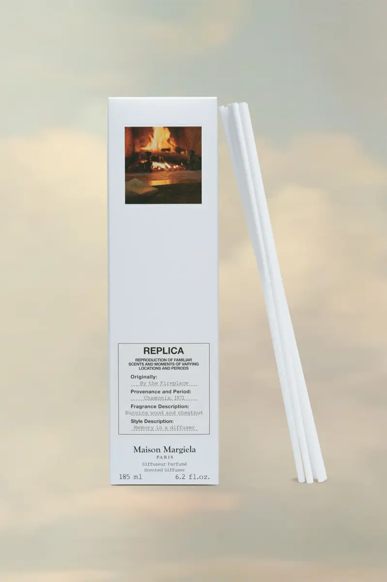 Il diffusore profumato Replica By the Fireplace ricorda la sensazione avvolgente di un camino nel cuore dell’inverno. Caldo, legnoso e dolce, il profumo trasporta in un luogo dove le fiamme scoppiettano su un fuoco confortante, il velo accogliente delle castagne grigliate riempie l’aria mentre all’aperto nevica su un paesaggio ghiacciato. La Maison ricrea questa atmosfera in una fragranza con un irresistibile accordo di castagna, frutti rossi, olio essenziale di chiodi di garofano e cashmeran. La diffusione della fragranza è continua per 4 mesi senza bisogno di alcun intervento e l’intensità della diffusione può essere regolata modificando il numero di bastoncini. Formato 185 ml. La collezione Replica riunisce fragranze iconoclaste che hanno il potere universale di evocare momenti preziosi. In linea con l’approccio minimalista della Maison, il diffusore Replica è semplice ma sofisticato. Un’etichetta che ricorda le etichette utilizzate su abiti e accessori della collezione moda Replica identifica ogni fragranza.